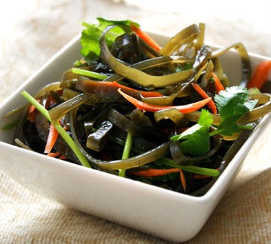 原料:干海帶、胡蘿卜絲、尖椒絲、香菜末、蒜泥、花椒油、香油、鹽、糖、醋。