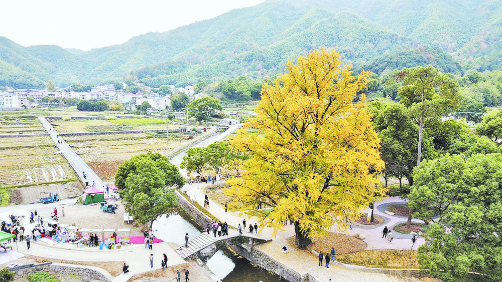 游客在銀杏樹下游玩 連日來,遠(yuǎn)在義北的大陳鎮(zhèn)紅峰村好不熱鬧,游客紛至沓來,只為一睹千年古銀杏樹換上一身金黃色的“新裝”。 “我們每年都會(huì)來看這棵‘樹王’,在這里拍照留念。”前來游玩的市民樓先生告訴記者,今年的古銀杏樹景點(diǎn)更美了。 銀杏為銀杏科,屬落葉喬木,又稱白果、公孫樹,國(guó)家二級(jí)保護(hù)植物,為我國(guó)三大“活化石”之一。據(jù)悉,大陳鎮(zhèn)紅峰村的千年銀杏樹有1100多年的樹齡,是義烏唯一的孑遺植物,直徑約1.5米,樹高30余米,至今枝繁葉茂,每年都會(huì)掛滿銀杏果,非常罕見。據(jù)紅峰村村民介紹,這棵樹曾經(jīng)歷3次火災(zāi),至今頑強(qiáng)生長(zhǎng)。 千年古銀杏樹既是紅峰村的最美景點(diǎn),也是不少義烏人對(duì)深秋最美的期待。每年晚秋初冬時(shí)節(jié),銀杏由綠變黃,金黃的銀杏葉隨風(fēng)飄落,滿地盡鋪黃金甲,極為壯觀。人們慕名來到紅峰村,在與銀杏樹親密接觸的同時(shí),還不忘與樹下的楊典橋合照留念。楊典橋由蠻石砌成,呈拱式古月橋。橋下小溪流過,橋上鋪滿銀杏葉,秋日的暖陽灑下來,一片金黃。 為了給游客更好的體驗(yàn)感,今年9月,大陳鎮(zhèn)啟動(dòng)了千年銀杏樹區(qū)塊景觀提升改造工程,在銀杏樹四周設(shè)立石板凳子,小溪上設(shè)置生態(tài)堰壩,還將沿著景點(diǎn)鋪設(shè)游步道。 |