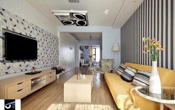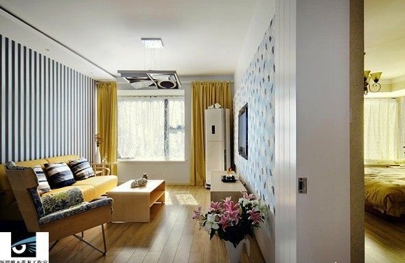 沙發(fā)一角,沙發(fā)的布藝和壁紙的搭配非常和諧完美