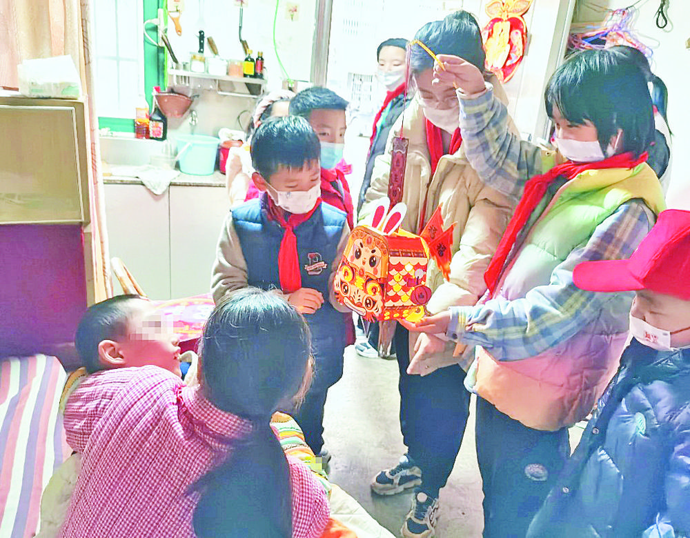 春節(jié)來(lái)臨之際,義烏市薪火社會(huì)工作服務(wù)中心聯(lián)合稠州小學(xué)學(xué)生及家長(zhǎng),推出關(guān)愛(ài)重殘兒童新春愛(ài)心陪伴體驗(yàn)活動(dòng)。志愿者們兵分6路,為分居在義烏10個(gè)鎮(zhèn)街的26名重殘兒童送去新春禮物及真心陪伴。 據(jù)了解,《義童繪明天——關(guān)愛(ài)殘障兒童》項(xiàng)目是2022年金華民政福彩金公益創(chuàng)投項(xiàng)目,旨在通過(guò)品牌項(xiàng)目開(kāi)展,讓更多力量參與到未成年人保護(hù)行列中,攜手重殘兒童一起向未來(lái)。 圖為孩子們?yōu)橹貧垉和c(diǎn)亮瑞兔燈籠。 |