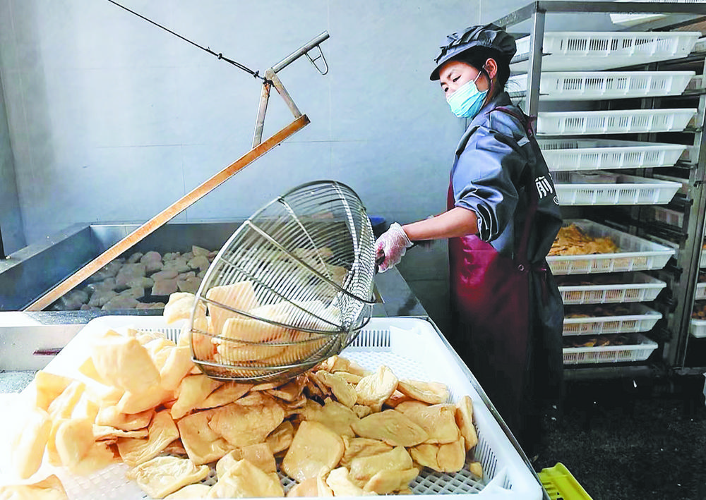 胡濤豆腐加工廠工作人員在炸制豆腐泡。 在廿三里街道“前溪印象”豆制品集聚工坊,每天都有大量的豆腐、豆?jié){、豆干、千張等豆制品,從一條條安全、衛(wèi)生的生產(chǎn)線上走向義烏的千家萬戶。 廿三里街道有關負責人介紹,隨著“前溪印象”豆制品集聚工坊的建成投用,轄區(qū)內的22家豆制品小作坊實現(xiàn)了食品加工生產(chǎn)統(tǒng)一集中管理,市民“舌尖上的安全”從源頭上得到了保障。 2月17日上午,記者走進豆制品集聚工坊內的胡濤豆腐加工廠,看到工作間內清晰地劃分成豆腐泡炸制區(qū)、豆?jié){制作區(qū)、豆腐干制作區(qū),3名工作人員穿著統(tǒng)一的工作服,佩戴著口罩、衛(wèi)生帽、衛(wèi)生手套,忙碌而有序地制作著豆制品。 “前溪印象”豆制品集聚工坊運營負責人毛小亮介紹,“小作坊”連著“大民生”,義烏借鑒小微企業(yè)園的建設運營理念,創(chuàng)新打造豆制品作坊集聚工坊,該工坊擁有4500平方米豆制品生產(chǎn)車間,吸引了義烏、東陽的24家豆制品作坊入駐,產(chǎn)品銷往義烏、東陽各大農(nóng)貿(mào)市場、超市。 胡濤豆腐加工廠是首批入駐集聚工坊的商家之一,于2020年租下一個車間,擁有獨立的標準化生產(chǎn)加工場所,讓食品生產(chǎn)過程更加規(guī)范安全。“集聚工坊提供的加工場所更規(guī)范,并對生產(chǎn)流程、豆制品質量等生產(chǎn)過程中的各個環(huán)節(jié)進行把關,增強了從業(yè)人員的食品安全意識,也讓生產(chǎn)流程、產(chǎn)品質量有了質的飛躍!焙鷿垢庸S負責人表示,他從事豆制品加工已有16年,進入集聚工坊后,首次對豆制品加工設備進行了更新?lián)Q代,每300斤黃豆的制作效率由原先的10小時縮短至8小時,人工也縮減了一半。 “以前,像這種豆制品都是村里家庭小作坊生產(chǎn)的,生活區(qū)和生產(chǎn)區(qū)沒有嚴格區(qū)分,生產(chǎn)環(huán)境不好把控,食品安全風險相對也高!必ト锝值老嚓P負責人介紹,“現(xiàn)在進行統(tǒng)一管理后,集聚工坊配備了專業(yè)檢驗檢測設備和技術人員,對原材料和豆制品施行‘日檢+抽檢+送檢’,嚴把入口關和出口關。同時,借助電子攝像頭、溫濕計等硬件設施實現(xiàn)數(shù)據(jù)上網(wǎng),對各作坊的生產(chǎn)加工及場所環(huán)境進行實時監(jiān)督。” 在規(guī)范監(jiān)管的同時,集聚工坊用心用情為小作坊業(yè)主提供服務。針對小作坊普遍存在管理人員食品安全意識薄弱、制度落實不到位等問題,集聚工坊聯(lián)合街道、市場監(jiān)督管理所上門進行“手把手”指導,幫助小作坊業(yè)主建立設備清洗消毒、食品質量溯源等臺賬,進行食品安全知識培訓,鼓勵小作坊業(yè)主運用現(xiàn)代食品工業(yè)發(fā)展理念,改進生產(chǎn)經(jīng)營條件和工藝技術。 作坊雖小,但輻射不小。隨著文旅行業(yè)的興起與發(fā)展,豆制品集聚工坊已接待研學師生近千人!敖酉聛恚覀冞將充分挖掘豆制品傳統(tǒng)制作技藝的非物質文化遺產(chǎn)價值,進一步打造豆腐非遺文化主題研學基地,多元展示、深度體驗豆制品傳統(tǒng)制作技藝,銷售豆制品非遺文化周邊產(chǎn)品,實現(xiàn)文化價值到經(jīng)濟價值的轉化!必ト锝值老嚓P負責人表示。 |