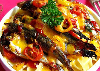 材料:煎好的五彩丁香魚、干蝴蝶面200克、車達(dá)芝士50克、番茄醬100克、羅勒葉幾片、橄欖油10克、鹽5克。