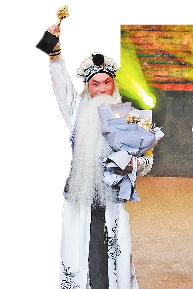 “在藝術(shù)的道路上會遇到困難、挫折和磨礪,只有經(jīng)歷過這些,才能更有底氣去面對風浪,更有勇氣去揚帆遠航……”3月8日晚,杭州蝴蝶劇場內(nèi)人潮涌動,第六屆“浙江戲劇獎·金桂表演獎”頒獎典禮的舞臺中央,義烏市婺劇保護傳承中心演員湯義波手捧獎杯激動不已。面對厚愛他的觀眾,談起獲獎感言,湯義波感恩不斷。 欲摘“梅”,先折“桂”。由省文聯(lián)和省劇協(xié)設(shè)立的“金桂表演獎”,是浙江戲劇表演藝術(shù)的最高獎項,也是通往中國戲劇梅花獎的必經(jīng)之路。自2012年設(shè)立以來,每兩年一屆,每屆全省僅評選6名優(yōu)秀演員。繼女武生季靈萃之后,湯義波是義烏第二位獲此殊榮的演員。 十年寒窗磨一劍,一朝蟾宮折“桂”時。為了這份榮耀,湯義波已苦苦磨礪了23年。正如頒獎詞所述:他是“改革先鋒”謝高華,他是“一代河神”朱之錫,他是“徐文清公”徐僑……他在婺劇舞臺上演繹著一個個杰出的義烏人,用義烏人敢闖敢拼、勇于開拓的精神夯實著他的婺劇世界。“以身戴行,以情塑人,如水成一波而不斷”,這是他對舞臺人物刻畫的至情至性,也是他對婺劇藝術(shù)的追求與心得。 劈波斬浪,一往無前。湯義波一步一步成長為國家一級演員,先后榮獲浙江省第二屆婺劇節(jié)新劇目大賽表演金獎、浙江省第十一屆戲劇節(jié)優(yōu)秀表演獎、“新松計劃”一等獎等。去年10月,位列第六屆金桂表演獎榜首;今年2月,憑借在原創(chuàng)婺劇現(xiàn)代戲《義烏高華》中謝高華一角的出色表現(xiàn),再獲浙江省第十五屆戲劇節(jié)優(yōu)秀表演獎。 以身戴行 把根扎在農(nóng)村 婺劇來源于民間,以前叫草臺戲,有著最為廣泛的戲迷群體。 1979年,湯義波出生在武義縣的一個小山村里,父母都務農(nóng),家里經(jīng)濟拮據(jù)。村民雖然都不富裕,村里樂隊鑼鼓班卻很齊全,空閑時大家都會唱上幾句,年節(jié)時也會有戲班來演上幾場。從小,他就愛趴在戲臺邊看戲,總是從頭看到尾特別著迷,還會跟著一起唱。 “初中畢業(yè)后,我同時考取了省、金華市和武義縣的戲校,因為付不起學費,只能放棄。”湯義波說,回想當年的憾事,如今卻十分感激,“正是在外打工的幾年里,我深知自己是如此熱愛婺劇!睉汛е蚬さ奈⒈》e蓄,19歲那年,他重新參加考試,如愿考入武義縣第二職業(yè)藝術(shù)學校戲曲班,成了學校里年齡最大的學生。 起步就比同學們晚了六七年,湯義波鉚足了勁迎頭追趕!皩W校是6點半開始練功,那我就提早一小時起床;放學后,我在練功房再多留一小時,這樣每天就能加練兩個小時!睘榘焉眢w條件充分開發(fā)出來,他在練習腰、腿、韌帶上下足功夫,打下堅實的基礎(chǔ);同時勤練身段、刀槍把子、軟硬毯子功等,把基本表現(xiàn)手段掌握扎實。功夫不負有心人,在學校的各項考核中,他的成績始終名列前茅。 “整整三年,上午加練,晚上加練,周末還是接著加練,很痛苦,很枯燥,太累了!睖x波說,“唯有真正熱愛,才能守得住練功房的寂寞,受得住咬牙堅持的辛苦,這門藝術(shù)才能得以傳承發(fā)展。” 臺上一分鐘,臺下十年功。這是前輩們留下的箴言,也是他在學藝道路上最深刻的體會。自2000年進入義烏市婺劇保護傳承中心以來,他一刻也不敢懈怠,保持著“每天加練兩小時”的習慣。2004年,出演《相國志》樂羊一角時,為了練好“540度僵尸跌”,他甚至每天摔200多個,堅持練習了幾千次。 “現(xiàn)在,我很享受練功的過程!痹谖⑿排笥讶,他經(jīng)常發(fā)布“每日一練”小視頻,分享練功到大汗淋漓時的暢快感受。 “戲曲不是影視劇,不是拍完了就可以休息,必須每天演、每天保持,每一場都是從頭來過,更好的表現(xiàn)肯定是下一場。”湯義波說,“婺劇生在農(nóng)村,長在農(nóng)村。婺劇演員的根也要扎在農(nóng)村!睘榇耍L年堅持在農(nóng)村第一線參加演出,每天帶妝長達10小時,平均每年演出200多場,“不管主角、配角,老百姓需要什么,就演什么”。 以情塑人 演“活”每一個角色 入團后不久,敢闖敢拼、勤奮刻苦的義烏精神就烙在了湯義波的心間。 2003年開始,他抓住每一個飾演重要角色的機會,先后主演了《徐策跑城》《打金磚》《雞毛飛上天》《程嬰救孤》《一代河神》《義烏高華》等多個劇目,演繹過40多個角色,戲路不斷拓寬,聲名鵲起,備受群眾喜愛。 “自學戲以來,可能是身上表現(xiàn)的特質(zhì)讓老師覺得我可以擔任老生的角色,就讓我主攻老生,恰好這也是我喜歡的方向。”湯義波笑著說,每次掛上髯口,穿上高靴,就自信滿滿。而一個演員要被人記住,必須要有自己的代表性劇目。 “《打金磚》可以算得上是我的拿手好戲!边@出戲根據(jù)歷史人物故事創(chuàng)作,情節(jié)生動有趣,湯義波飾演的劉秀一角在劇中由正面人物驟變反面人物更屬神來之筆。 “這出戲原是京劇劇目,是我2006年移植過來的!睖x波說,那一年,他意外從電視播出的一場京劇大賽上看到了這個劇,馬上就入迷了,想要學著劇中的身段演繹?伤诹x烏跑了個遍都沒有找到這個劇的光碟,后來才在杭州的一家書店找到。 如同瘋魔了一般,請不起老師,他就自學,根據(jù)錄像把唱詞一一抄錄下來,再跟著錄像練習一個個動作!拔矣X得這個劇結(jié)合婺劇唱腔和表演風格肯定能出好戲,就邀請胡奇之老師來編曲,并第一次嘗試了自編自導!睔v時4個多月,