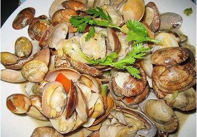 1、新鮮蛤蜊用淡鹽水浸泡20分鐘,使其吐盡泥沙備用。鍋中加入清水蔥段、2片姜一起燒開(kāi),放入蛤蜊焯燙至開(kāi)口,然后撈出瀝干水分;