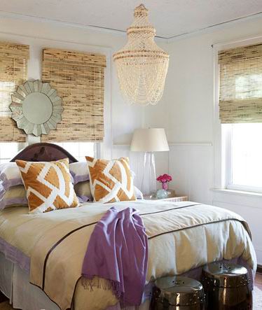 臥室以一片純凈的白色作為空間基調(diào),睡床上或大面積的黃色被單,或小范圍的紫色披毯點(diǎn)綴,兩種清淺色調(diào)的適度對(duì)比運(yùn)用讓整個(gè)臥室顯得浪漫而旖旎。若是夏天看著這樣的臥室沉沉睡去,定能為你編織一個(gè)如夢(mèng)如幻的意境。