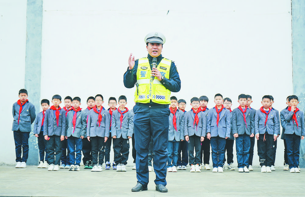 3月27日是全國(guó)中小學(xué)生安全教育日。昨日,宗澤小學(xué)開展“交通安全伴我行”主題活動(dòng),邀請(qǐng)市交警大隊(duì)江東中隊(duì)警官為學(xué)生們講解交通安全知識(shí),進(jìn)一步提高學(xué)生們的交通安全意識(shí)和自我保護(hù)能力。