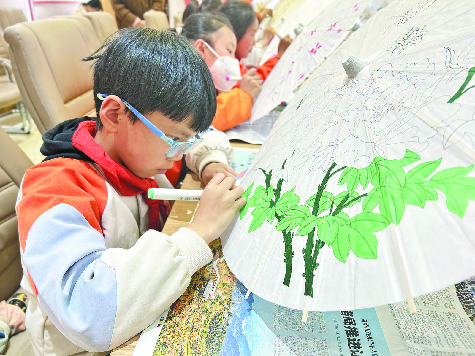 4月4日,福田街道振興社區(qū)開展“國(guó)韻初識(shí)之清明·油紙傘手作”活動(dòng),以此寄托對(duì)故去親人的思念;顒(dòng)中,志愿者老師向大家講述油紙傘歷史、制作工藝,并鼓勵(lì)學(xué)生將清明時(shí)節(jié)的景象繪制在油紙傘上。青團(tuán)、風(fēng)箏、柳樹……不一會(huì)兒,一件件代表清明元素的作品躍然傘上。