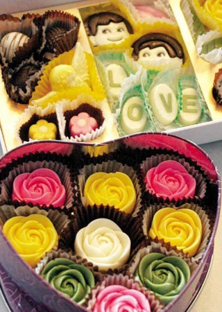 巧克力做成的各式喜糖,絢麗多彩,但也是價格不菲。