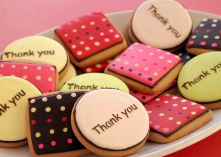 極具童趣的餅干喜糖,“Thank you”的字樣表達了新人對來賓的感謝。