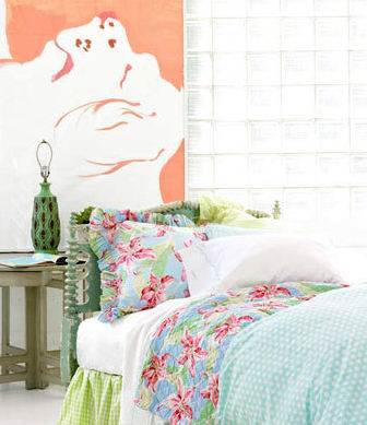 淡雅的天藍(lán)和柔美寧?kù)o的香水百合搭配出寧?kù)o女孩的私密空間。