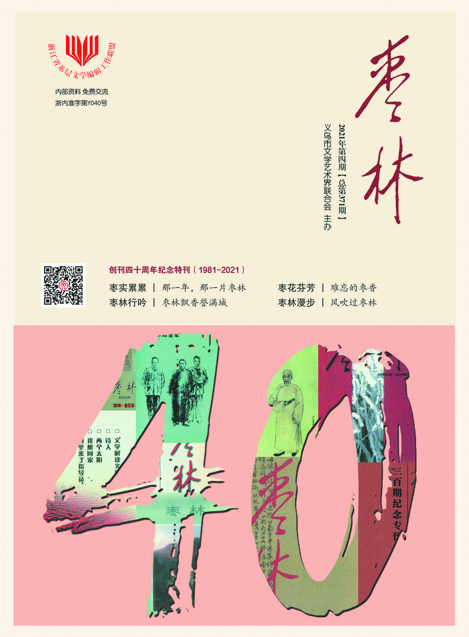于歷史而言,40年乃彈指一揮間。 于義烏而言,卻是意義非凡。40年砥礪奮斗,40年生動實(shí)踐,義烏人民用自己的雙手、心血、智慧,創(chuàng)造了從一個農(nóng)業(yè)小縣跨入國際商貿(mào)城市的奇跡。40年間,義烏人民還開墾了一片文學(xué)沃土,建造了一個精神家園,它就是《棗林》——一個由市文聯(lián)主辦的純文學(xué)刊物,也是義烏唯一一個“生于斯長于斯”創(chuàng)辦40余年的文學(xué)期刊。 于《棗林》而言,40年是一次次更迭成長,是從青澀走向成熟、從懵懂走向自信、從初出茅廬走向落落大方的嬗變。40多年里,一個又一個“棗林人”接續(xù)奮斗,打造了一個海納百川的平臺,鏈接了一批澎湃熱血的文學(xué)人,成就了“百里棗林紅似火,累累碩果垂彎枝”的盛況。 青青棗苗迎風(fēng)立 歲月如梭,長河有痕。 在義烏市檔案館里,珍藏著1981年1月1日出版的首期《棗林》,在《致讀者》一文中明確:《棗林》由《義烏文藝》改刊號而來。 緣何取名“棗林”?上世紀(jì)80年代的義烏鄉(xiāng)村,丘陵上滿是一浪一浪鋪開的山地,栽種的都是棗樹。春時,簌簌衣巾落棗花,秋時,累累紅果成云霞……“棗林有詩情又有畫意!眲(chuàng)刊人之一龔震源在《<棗林>的誕生》一文中回憶說。 1983年,第一期《棗林》刊名改由丁玲題寫。自此,《棗林》由縣文聯(lián)主辦,一時間為義烏各界人士所熟知、向往。 “在當(dāng)時的歷史特定環(huán)境下,《棗林》是除義烏廣播站以外的唯一一家主流的紙質(zhì)媒體,也就成了義烏文化的代名詞!笔形穆(lián)副主席、作協(xié)主席何恃堅(jiān)說。 一路走來,《棗林》并不平凡。 1992年,《棗林》改名為《棗林 棗林》;1997年,又改名為《棗林文藝報》;2000年,再次改名為《商城文化報》;2001年,恢復(fù)原刊名《棗林》。歷經(jīng)十年風(fēng)雨,《棗林》已由16開的小報紙成長為一本純文學(xué)季刊雜志。2006年起,《棗林》固定為雙月刊。從此,《棗林》真正在家鄉(xiāng)沃土扎下了根。 40余年,《棗林》幾乎與義烏市場同步成長。雖是地方性的文學(xué)刊物,卻備受歷屆中國文壇領(lǐng)導(dǎo)和文學(xué)名家們的關(guān)注。 “希望義烏文學(xué)多出幾個像駱賓王、馮雪峰這樣的文學(xué)家。”著名作家丁玲曾寄予厚望。2008年11月5日,中國作協(xié)主席鐵凝興致勃勃為《棗林》題詞:“文學(xué)之樹常青”。何建明、葉文玲、艾青、吳勞等眾多文學(xué)藝術(shù)大家都曾留下墨寶。 《棗林》容量雖小,分量卻不輕。王西彥、俞天白等一批享有盛譽(yù)的義烏籍鄉(xiāng)賢文人,接到約稿即伏案寫作,寄往故鄉(xiāng)。與此同時,《棗林》也得到了巴金、黃亞洲、舒婷等文壇名家的青睞。他們或指導(dǎo)或來稿,為《棗林》增添了厚重的文學(xué)分量。 “我最早的小詩,就在一個區(qū)辦小報上發(fā)表的。所以一直到現(xiàn)在,我對這樣的文藝小報還有一種鄉(xiāng)土之情……”著名詩人顧城就曾寫信這樣說。 作為內(nèi)部文學(xué)刊物,《棗林》的發(fā)行早已突破了地域界限,不僅贈送給我市黨政機(jī)關(guān)、企業(yè)廠礦、學(xué)校和廣大文學(xué)愛好者,還源源不斷地流入全國各地文學(xué)名家、文學(xué)報紙雜志的編輯、科研院校圖書館和在外工作的義烏鄉(xiāng)賢的手中,讓他們了解義烏文化的昨天、今天和明天。 累累碩果垂彎枝 桃花綻放時,“棗林詩會”在廣袤的原野蕩漾;南蜜棗飄香時,一首首《棗樹吟》在夢想出發(fā)的家園吟誦…… 《棗林》作為義烏唯一一個發(fā)表純文學(xué)作品的陣地,市文聯(lián)以“出人才、出精品”為宗旨,為培養(yǎng)文學(xué)新人,獎掖文學(xué)新秀,組織開展各層面的創(chuàng)作活動,舉辦了無數(shù)次豐富多彩的筆會、采風(fēng)、作品研討會、文學(xué)座談會及系列征文活動。 至今,《棗林》已經(jīng)出刊381期,結(jié)下累累碩果。 “小說、詩歌、散文和文藝評論等精品欄目,一直沿用至今。”梅海東介紹,圍繞黨和政府中心工作,緊扣時代的發(fā)展,《棗林》每年都會適時推出不少增刊、專輯,社會影響十分深遠(yuǎn)。 為挖掘和弘揚(yáng)義烏紅色三杰文化,《棗林》傾注了大量心血,參與了吳晗同志誕辰 75周年、逝世15周年紀(jì)念活動以及紀(jì)念馮雪峰誕辰80周年、100周年、110周年,均分別出版了“紀(jì)念專號”,助推了紅色文化的繁榮發(fā)展。新冠疫情期間,組織發(fā)表專輯文章200多篇,同心同德以文抗疫…… 自設(shè)立首屆“棗林獎”以來,市文聯(lián)先后組織了建黨100周年、喜迎黨的二十大、義烏市場建設(shè)40周年、孝義義烏等一系列征文活動,并出版作品集或紀(jì)念?、專輯;為培養(yǎng)文學(xué)新人,開辦了《棗林》文學(xué)創(chuàng)作函授中心,連續(xù)舉辦了四屆“文學(xué)之星”大獎賽……其中,自2017年開始,連續(xù)舉辦三屆義烏駱賓王國際兒童詩歌大賽,并刊登獲獎作品,增發(fā)澳門培正中學(xué)?,不斷做大、做強(qiáng)、做精文學(xué)品牌,打造“國際兒童詩歌重鎮(zhèn)”。 “請進(jìn)來、走出去”是《棗林》培養(yǎng)文學(xué)人才的一個戰(zhàn)略。市文聯(lián)利用各種機(jī)會、多種形式,舉辦了大量文學(xué)藝術(shù)講座和輔導(dǎo)聯(lián)誼等活動。同時,分期分批組織骨干作家赴全國各地采風(fēng),以文會友,提升雙方作