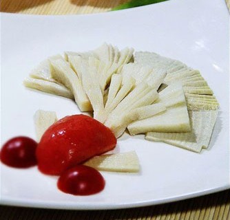 原料: 冬筍250克、高度米酒15克、鹽3克、白糖15克、味精1克、香油少許。