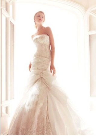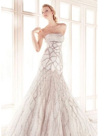 全身用鉆飾品織出悉悉索索的魚鱗網狀,抹胸魚尾,放佛剛剛出水的人魚新娘。