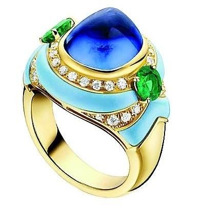 這枚個性的寶格麗藍(lán)色寶石戒指于2011年新上市,透徹的顏色讓人愛不釋手。