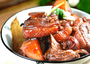 主料:光鴨半片、大土豆1個。 配料:干燈籠椒4-5個、香葉2片、草果1個、花椒1小把、蔥姜適量。 調(diào)料:醬油、啤酒、糖各適量。 做法: 1、光鴨剁成小塊,洗凈焯水后取出,用流水沖盡血沫; 2、取平底鍋,不要放油,鴨皮朝下,將鴨塊排放進鍋里,中火煸至鴨皮呈金黃色; 3、將鴨塊翻動略炒后,推至鍋一邊,放入所有的配料,炒出香味; 4、將鴨塊與配料炒勻,加入醬油,翻炒,鴨塊完全上色,加入白糖,炒勻; 5、加入約三分之二瓶啤酒; 6、加入去皮切成滾刀塊的土豆,大火燒開后,小火、蓋蓋燜40-60分鐘,最后如果湯汁還多的話,改大火盡量收干即可。 |