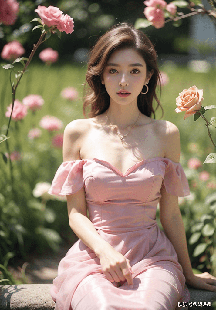 在這組夢(mèng)幻般的圖片中,一位美麗的女子身穿一件粉色的連衣裙,坐在一片粉色的玫瑰花海之中。她那披肩的長(zhǎng)發(fā)如絲般自然垂落在身后,閃爍著陽(yáng)光的光澤。她的嘴唇微微張開(kāi),仿佛在邀請(qǐng)著溫暖的陽(yáng)光和花海的香氣進(jìn)入她的世界。陽(yáng)光灑在她的身上,使得她的肌膚更加細(xì)膩、通透,仿佛是粉色的珍珠,充滿(mǎn)了生命力。