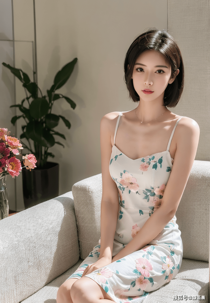 圖片中,她坐在沙發(fā)上,雙腿修長而優(yōu)雅地交疊在一起,她的每一個動作都充滿了優(yōu)雅與自信。她的身姿挺拔而優(yōu)美,背部線條優(yōu)雅而流暢,雙腿的線條更是長而直,吸引著人們的目光。她的身材完美無瑕,如同一位精致的雕塑,比例勻稱而優(yōu)雅。