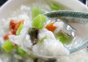 原料: 苦瓜100克,粳米50克,冰糖100克,食鹽適量以及清水700克
