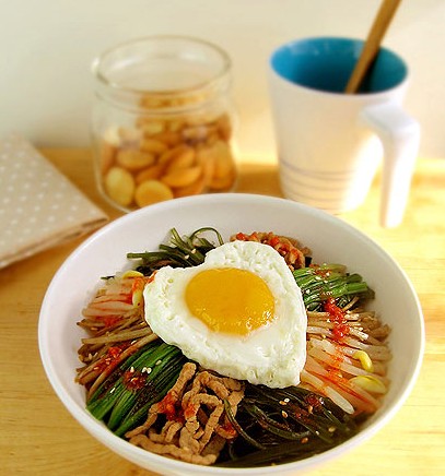 原料:白飯2人分、袋裝黃豆芽1/3袋、牛里脊肉1小塊、海帶適量、牛蒡1/4條、菠菜適量(最好多準備些,菠菜一燙就沒有多少了)、雞蛋1個、熟白芝麻適量。 腌制牛肉的調料:醬油少許、料酒少許、淀粉少許、香油少許。 拌飯的辣醬:韓國辣椒醬1大匙、水1大匙、蒜茸少許、白糖少許、醋少許、香油1大匙(可以邊調邊嘗~)。 做法: 1、一小塊牛里脊肉,洗凈,逆紋切成細絲,加腌肉料拌勻腌15-20分鐘,然后過油炒熟,再撈出瀝干。 2、黃豆芽洗凈,放入沸水里汆燙一下,要把它焯熟,焯燙的時候水里加一點油和鹽,把焯好的黃豆芽放入容器,加少許辣椒粉拌勻。 4、海帶洗凈,切成細絲,同樣的,汆燙后加鹽和香油拌勻。 5、牛蒡去皮,切絲,平底鍋燒熱后加一點油,把牛蒡絲炒軟,加醬油和糖調味,再撒入熟白芝麻拌勻。這樣牛蒡的味道就變得很好了。 6、拌飯的辣醬也需要再加工一下,把韓式辣醬,水,蒜茸,糖,醋,香油拌勻就可以了。 7、我沒有石頭豌,就用家里的普通大碗吧,盛上白飯,把所有準備好的材料呈放射狀擺好,我做了煎蛋,最后再撒上點白芝麻,放入辣醬,拌勻就可以吃了。如果你有石頭碗,可以擺好材料后,把石頭碗放在火上燒至有點鍋巴,中間再打一個雞蛋,再撒上白芝麻和辣醬。 |