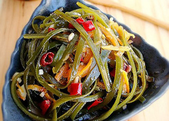 原料:新鮮海帶絲。 輔料:胡蘿卜、干紅辣椒、蒜、生姜。 做法: 1、將所需材料洗凈備好(海帶絲要浸泡2—3小時); 2、胡蘿卜擦成細(xì)絲,姜蒜切末,干紅辣椒切末或小段,備用; 3、將浸泡后的海帶絲在流動的水下反復(fù)沖洗5分鐘,洗去雜質(zhì); 4、將海帶絲下入清水鍋中煮約15分鐘,可加少許白醋和幾滴食用油;15分鐘后,撈起,備用; 5、鍋洗干凈,放適量油,油熱后將姜末蒜末,紅辣椒胡蘿卜絲下入,翻炒2分鐘,澆在海帶絲上,適量加一點食醋,拌勻即可,喜歡花椒油的可以加一點。 |