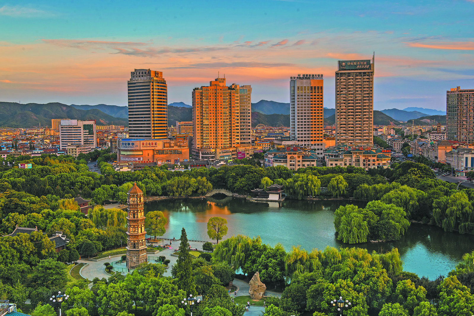 每座城市都有屬于自己的面孔,或是城市地標(biāo),或是市井風(fēng)情,也可以是代表人物。透過這些面孔,折射出的是這座城市的氣質(zhì)與內(nèi)涵、印記與憧憬。 烏傷,千年古縣源遠(yuǎn)流長。古往今來,多少義烏人背井離鄉(xiāng),縱然離得再遠(yuǎn),也永遠(yuǎn)不會忘記義烏地域文化的象征——繡湖和大安寺塔,總盼著有生之年能回來,到繡湖邊走走,到大安寺塔下看看。 繡湖之于義烏,如同西湖之于杭州。過去的繡湖,是我們這座城市的中心,是許許多多老義烏人的記憶所在:周邊熱鬧的居民區(qū)、義烏老師范學(xué)校、老電影院……它不僅僅是地標(biāo),同時也是義烏人的情懷。 光陰如梭,彈指一揮間,卻滄海桑田。變的是時光歲月,不變的是大安寺塔的巍峨,始終矗立在城市之央,與水波微漾的繡湖一同靜靜地駐足,記錄著義烏的每一寸變化?粗x烏從一座名不見經(jīng)傳的小城,到而今展現(xiàn)這幅繁華景象。 初春的繡湖廣場是靜穆的,四周商場林立,高樓環(huán)繞,不遠(yuǎn)處的大安寺塔佇立于繡湖畔,湖塔相連,景色相襯。 這盛世繁華,正是多少代新老義烏人所期待和創(chuàng)造的。 老城故事,煙火人間 3月3日的商城,暫時告別數(shù)日的綿綿春雨,迎來了久違的陽光。 午后的繡湖公園,游人如織,有推著嬰兒車漫步的年輕夫妻,有不時聊得開懷大笑的男男女女,還有正悠閑散著步的大爺大媽。不遠(yuǎn)處,戲友們在吹拉彈唱,旁邊坐著的幾位正用手打著拍子,嘴里不經(jīng)意地輕哼幾句;幾位棋友在楚河漢界間排兵布陣,總有觀者做不到“觀棋不語”…… 大安寺塔旁邊的石凳上,坐著一老一小!澳棠,這塔好高啊,好像有點破,外面為什么要圍著?”五六歲的孩童抬頭半瞇著眼,瞅了瞅眼前的這座塔問道!斑@個叫大安寺塔,奶奶像你這么小的時候常跟隔壁的小伙伴跑這邊來玩……”這名奶奶姓金,出生在附近的荷花芯。對繡湖一帶比較熟悉的她還開始給小孫子講起了故事,“很久很久以前,這個湖很大的,湖底有個水牛精……” 關(guān)于這個傳說,在《義烏地名故事》中有相關(guān)表述。大意為,很久以前,這個湖是現(xiàn)在的40多個大小。不知道什么緣故,大湖經(jīng)常發(fā)大水,淹沒四周大片良田,弄得農(nóng)民十年中有九年沒有收成。 有一天,湖邊來了個肩背葫蘆的白頭發(fā)長胡子道人。他繞著湖堤走了一圈又一圈后,告訴大家湖水泛濫是因為湖底有水牛精在作怪,只要齊心協(xié)力,一定能除掉它。于是,大家匯集了臨近幾個村的所有水車,不分晝夜地分批輪流車水。 一直車了七七四十九天,眼見湖水只剩下一個底了。這時,道人又說,水牛精中午要打盹,我們一定要搶在它醒來之前把湖水車干,把它燒死。聽聞此言,從四面八方涌來的男女老少齊上陣,加入車水大軍。眾人想盡各種辦法,到午時三刻,湖水終于排干了,只見一個形狀嚇人的水牛精正盤著頭、縮著腳,呼呼大睡。 正當(dāng)大家注視著湖底時,水牛精突然翻了一個身并仰天大叫,隨后從口中噴出一股水來,湖水立即又漲滿了。在道人的引導(dǎo)下,大家又整整干了四十九天,終于把湖水又排干了。道人趕緊解下身上的葫蘆,把里面的神水灑在水牛精身上,口中念念有詞。眾人用干柴蓋住水牛精,倒上油,點著火,燒了三天三夜,終于把水牛精燒成了灰。 由于擔(dān)心水牛精的精靈不散,再出來興風(fēng)作浪。于是,百姓們在被燒成灰的水牛精上面堆上泥土、壓上石塊,造了一座七層寶塔。之后,鄉(xiāng)親們又在塔旁建起一座寺,稱大安寺,并將塔命名為大安寺塔。從此,義烏城風(fēng)調(diào)雨順,黎民百姓安居樂業(yè),這湖也變得越來越漂亮了。 除了口口相傳的傳說外,大安寺塔的由來還有其他說法。從義烏地方志資深專家傅健老師提供的相關(guān)史料來看,有關(guān)大安寺塔的幾個時間軸點主要如下—— 唐咸通八年,在縣東北一百五十步建尼寺,名“普安”,為大安寺之前身。 宋大觀三年,知縣徐秉哲筑堤以通往來,在繡湖中心之柳洲建寺,大觀四年造塔,而景益勝。 宣和年間,寶月大師梵淵募檀越樓氏,即大安寺故址創(chuàng)建“茗平院”,因得茗平山鐘,遂名。 紹定三年,“茗平院”更名“永平院”,后改教寺,今廢。 明永樂十四年,縣民陳永誠傾家資,將大安寺塔修葺一新。 清乾隆年間,大安寺塔為龔姓人所管業(yè)。 二十世紀(jì)初,大安寺塔塔剎倒塌,在倒下來的磚石中,有一塊石碑專門鐫刻著唐朝駱賓王的《詠鵝》詩。 民國十六年,義烏縣商會在繡湖東原大安寺舊址建造樓房八間,作為辦公場所。 抗日戰(zhàn)爭時期,大安寺已無人管理,只剩下一口鐵鐘存放在南門龔大宗祠內(nèi)。 …… 相關(guān)史料記載,繡湖又名繡川或繡川湖。明朝正統(tǒng)年間,時任知縣劉同游玩時詩興大發(fā),把繡湖風(fēng)景的美概括為繡湖八景,即驛樓晚照、煙寺曉鐘、花島紅云、柳洲畫舫、湖亭漁市、畫橋系馬、松梢落月、荷蕩驚鷗。 據(jù)說,歷代文人墨客曾圍繞繡湖八景寫了四五十首詩詞。其中,南宋愛國詩人陸游到福建赴任途中經(jīng)過義烏時游過繡湖,還即興做了一首《題繡川驛》:繡川池閣記曾游,落日欄邊特地愁。白首即今行萬里,淡煙依舊送孤舟。歸心久負(fù)鱸魚鲙,春色初回杜若洲。會買一蓑來釣雨,憑誰先為謝沙鷗? 傳說也好,史料也罷,真假已無從考證,聞?wù)叽罂梢恍Χ^。時至今日,有一點是大