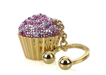 五彩水晶鑲嵌的蛋糕掛鏈制作精細,金屬杯型的外殼閃閃發(fā)光,鏈子的銜接處有設計師的加蓋箍可以附加到鑰匙或掛到包上。