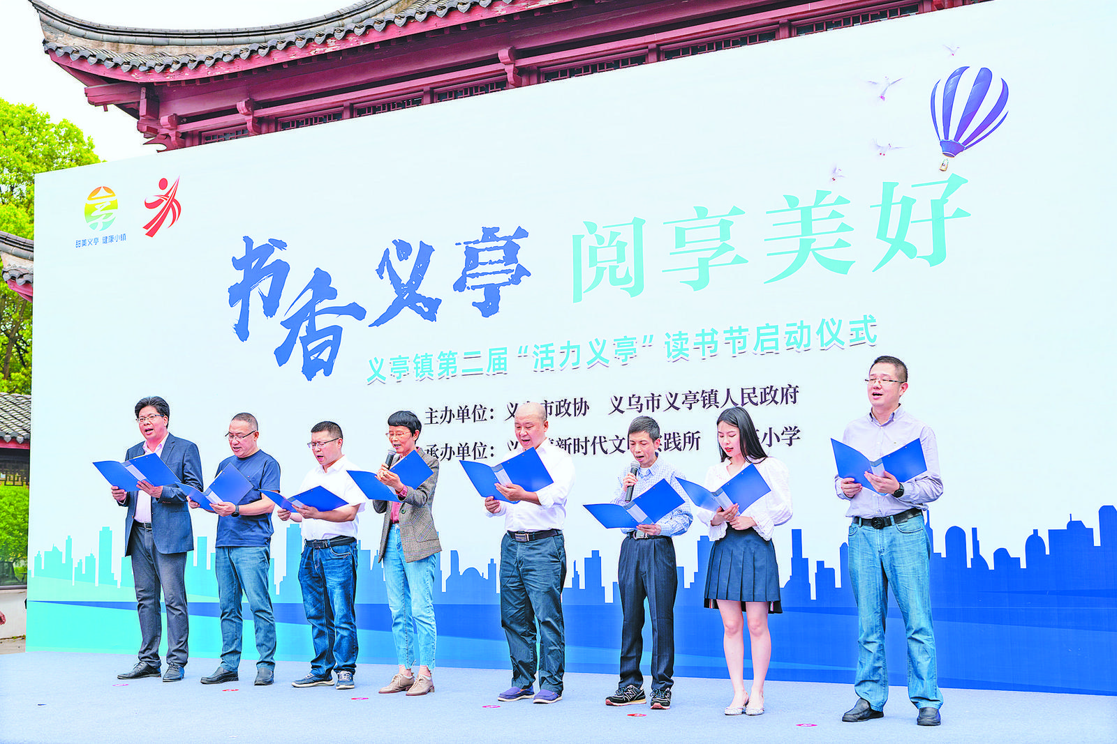 昨日,義亭鎮(zhèn)舉行“書香義亭 閱享美好”第二屆“活力義亭”讀書節(jié)活動(dòng),共同慶祝第29個(gè)世界讀書日的到來。 本次讀書節(jié)活動(dòng)由市政協(xié)、義亭鎮(zhèn)人民政府共同主辦。義亭鎮(zhèn)積極構(gòu)建全民閱讀服務(wù)體系,充分發(fā)揮政協(xié)力量,以“書香政協(xié)”助推“書香義亭”建設(shè),為群眾搭建了缸窯鄉(xiāng)村圖書館、龍華書院等一批閱讀分享、文化交流、親子互動(dòng)的人文空間,舉辦了青益書屋、讀書節(jié)等形式多樣的全民閱讀活動(dòng),并積極打造“五亭領(lǐng)讀人”閱讀品牌,讓更多群眾享受閱讀的樂趣、培養(yǎng)閱讀的習(xí)慣。 據(jù)了解,義亭作為義烏的教育大鎮(zhèn),“耕讀傳家、詩書繼世”的家風(fēng)民風(fēng)源遠(yuǎn)流長(zhǎng),于1998年成立了義烏首個(gè)村級(jí)獎(jiǎng)學(xué)金“梅麓獎(jiǎng)學(xué)金”,以一鎮(zhèn)之地走出了朱位秋、喻景權(quán)兩位院士,重學(xué)好學(xué)樂學(xué)善學(xué)蔚然成風(fēng)。 活動(dòng)還對(duì)6人進(jìn)行了表彰,授予“2024年五亭領(lǐng)讀人”并頒發(fā)榮譽(yù)證書。 圖為義亭鎮(zhèn)政協(xié)履職小組成員在宣讀“共讀一小時(shí)”倡議,呼吁更多人多讀書、讀好書。 |