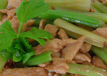 主料:雞胸肉,芹菜 調(diào)料:鹽,醬油,料酒,醋,白糖,淀粉 1、雞胸肉切絲后,加入鹽半勺,白糖半小勺,料酒1勺,醋半小勺,淀粉1勺,攪拌均勻后放置15分鐘。 2、芹菜擇去葉后洗凈,掰成小段備用。 3、鍋里把水燒開后,加入半小勺鹽,關(guān)火。再把掰好的芹菜段放進去焯水,5秒左右立即撈出,用涼水浸泡。 4、鍋里倒少量的油,把腌制好的雞胸肉倒入翻炒。 5、肉絲變色之后開大火,把淖好水的芹菜段瀝干水分,倒入快速翻炒1分鐘左右出鍋。 |
