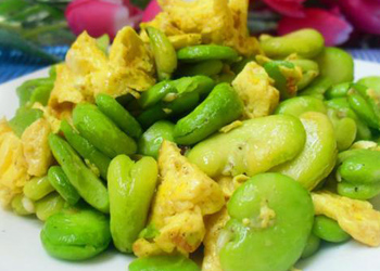 原料:蠶豆米300克,雞蛋2個(gè)。