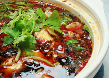 材料:新鮮淡水魚1條、黃豆芽或綠豆芽1把、生菜1棵、芹菜2根、香菜2根。 調料:花椒1大把 干辣椒段1大把 鹽1小勺 雞精1小勺 胡椒粉1小勺 淀粉1大勺 蒜瓣5粒切片 姜片10片 蔥段6段 料酒50毫升 郫縣豆瓣醬1大勺 辣椒粉1大勺 蛋清1個 清水500毫升。 做法: 1、把魚片成薄薄的魚片,然后用胡椒粉、蛋清、料酒、5片姜片、3段蔥、淀粉和鹽來腌制20分鐘; 2、炒鍋內倒入適量油燒熱,然后放入剩下的姜片、蒜片、1半的花椒和1半的干辣椒段爆香,待香味出來后放入豆瓣醬一起翻炒; 3、然后往鍋內倒入約500毫升清水(1碗左右),放入魚骨魚頭一起煮至沸騰,沸騰后將魚片放入燙2分鐘,并放入剩下的蔥段,即可關火; 4、在另一個大容器里放入豆芽、生菜和芹菜; 5、將燙好的魚片等全部倒入裝了蔬菜的大容器里,再在表面撒上辣椒粉; 6、把炒鍋洗干凈然后倒入較多油燒熱,放入剩下的一半花椒粒和干辣椒爆香,但是注意不要把干辣椒燒糊喲; 7、將麻辣油倒入魚片上,然后放入香菜即可。 |