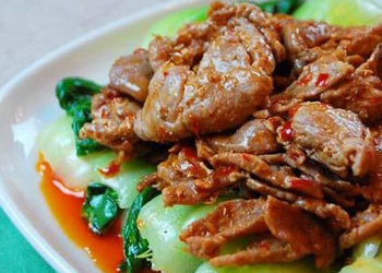 材料:豬瘦肉250克(最好是豬里脊肉)、油菜100克、姜末3克、碎花椒2克(約半茶匙)、辣椒油1大匙(15ml)、糖少量(小半茶匙)、醬油1大匙(15ml)、郫縣豆瓣1.5大匙(約30克)、淀粉2茶匙(約10克)、肉湯適量(約3大匙,沒有用水代替)、鹽少量(小半茶匙)、油300克(實耗50克)、香油10ml、雞蛋清1個 做法: 1、將豬里脊片切成厚約0.3厘米的大薄片,放入碗中,用蛋清、淀粉、鹽拌勻,腌制待用; 2、郫縣豆瓣醬剁碎;油菜清洗干凈;將醬油、糖、淀粉、肉湯兌成芡汁待用; 3、炒鍋燒熱,放入1大匙(15ml)油燒熱,放入油菜炒至斷生,用少許鹽調(diào)味; 4、將炒好的油菜鋪在盤子底部; 5、炒鍋洗凈,燒熱,放入較多的油,燒至6成熱時放入肉片滑炒; 6、待肉片變色,將多余的油潷出; 7、放入豆瓣醬和姜末炒勻,炒出香味; 8、倒入調(diào)好的芡汁炒勻; 9、放入辣椒油和香油炒勻即可,盛出鋪在油菜上面。 |
