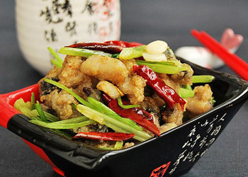 原料:鲅魚半條、香芹1把、干辣椒、花椒、蔥、姜、蒜。 做法: 1、香芹洗凈切段; 2、鲅魚收拾干凈,片下魚肉,切成小塊或條,用料酒、少許蛋清和干淀粉拌勻,腌20分鐘; 3、腌好的魚均勻拍上面粉; 4、鍋入油,油溫約170度時將魚肉一塊塊放入鍋中,中火炸至微黃; 5、準(zhǔn)備好蔥姜蒜和干辣椒; 6、鍋入油,油微熱時下入蔥姜蒜、干辣椒和花椒,小火慢慢煸出香味,然后倒入香芹,中大火翻炒; 7、倒入炸好的魚丁,翻炒片刻后調(diào)入少許香油和鹽即可出鍋。 |