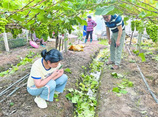 昨日,在義亭鎮(zhèn)葉前葡萄基地,農(nóng)技人員走訪了多個葡萄棚,現(xiàn)場查看葡萄生長情況,現(xiàn)場提醒種植戶密切關注后期天氣變化,及時做好肥水管理,防止發(fā)生葡萄裂果和日灼,同時確保排水通暢,控制田間水位,降低雨水對果實的影響。 當前我市夏黑、巨峰葡萄陸續(xù)上市,陽光玫瑰進入成熟期,持續(xù)降雨易造成田間積水過多,土壤水分飽和,棚內(nèi)濕度加大,會影響果樹根系生長和果實品質(zhì)。 連日來,根據(jù)天氣變化趨勢、農(nóng)作物生長周期等情況,市農(nóng)業(yè)農(nóng)村局強化農(nóng)業(yè)受災風險研判,切實做好領導帶班制24小時應急值班值守工作,保障上情下達、下情上報暢通,并通過農(nóng)民信箱、廣播電視臺、微信公眾號等及時發(fā)布天氣預警信息和技術(shù)措施,提醒農(nóng)戶做好防汛工作。與此同時,組織農(nóng)技人員分組到基地,指導農(nóng)戶及時做好農(nóng)業(yè)設施大棚加固修復、在田農(nóng)作物生產(chǎn)管理等活。 右圖為農(nóng)技人員在葡萄棚查看葡萄長勢。 |