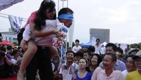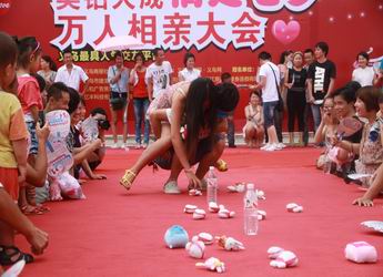相親會(huì)上,智力大闖關(guān)、體驗(yàn)車模、牛郎背織女等一系列好玩的游戲high翻全場(chǎng),這些“快樂(lè)分子”讓初次見(jiàn)面的單身男女們?cè)谟螒蛑惺斋@著浪漫。