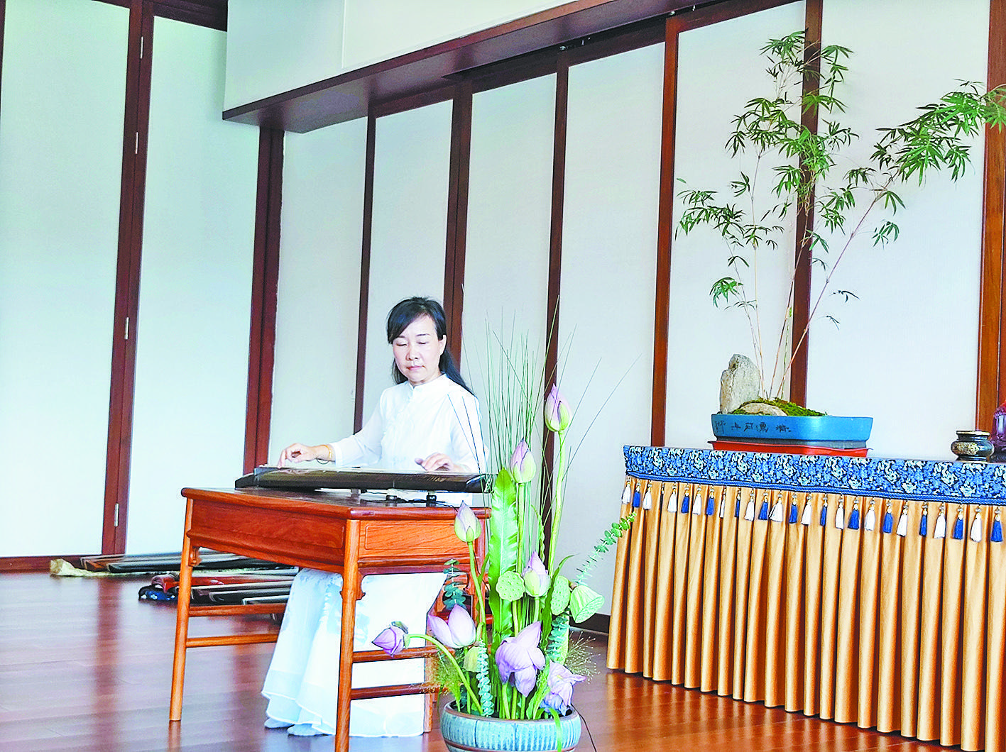 琴弦撥動(dòng),古音四起,深沉恬靜,空靈蒼遠(yuǎn)……7月6日,雙林寺內(nèi),國(guó)家一級(jí)演奏員、浙派古琴藝術(shù)省級(jí)傳承人蔡群慧和她的學(xué)生們帶來(lái)了一場(chǎng)如夢(mèng)似幻的雅集,近百名文藝愛(ài)好者現(xiàn)場(chǎng)領(lǐng)略傳統(tǒng)藝術(shù)魅力,收獲夏日別樣美好。 雅集上,著名古琴曲《陽(yáng)春》《白雪》《高山》《流水》等同臺(tái)呈現(xiàn),伴著戲腔和朗誦,讓聽(tīng)者如癡如醉。當(dāng)天,蔡群慧彈奏了《高山》《無(wú)諍頌》。只見(jiàn)她端坐于琴桌前,伏案撫琴,玉指纖纖,輕攏慢捻,琴音裊裊,絲絲入扣,雋永清新。“義烏歷史悠久,文化底蘊(yùn)深厚,希望此次活動(dòng)能讓更多人了解和感受非遺的獨(dú)特魅力以及古琴藝術(shù)的恒久光輝!辈倘夯郾硎。 蔡群慧是國(guó)家級(jí)非物質(zhì)文化遺產(chǎn)項(xiàng)目古琴藝術(shù)代表性傳承人姚公白先生親傳弟子、浙派姚門(mén)古琴藝術(shù)第三代傳人,曾在2016年G20峰會(huì)和2023年杭州亞運(yùn)會(huì)上,為貴賓演奏浙派古琴,向世界展示中國(guó)作為禮樂(lè)之邦的魅力與風(fēng)采。蔡群慧與義烏淵源頗深,2018年,她曾在義烏文化廣場(chǎng)劇院舉辦了“探幽千年古琴,尋勝百世昆曲”的文化講座,劇場(chǎng)內(nèi)座無(wú)虛席。 |