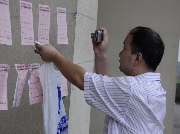 強(qiáng)大的親友團(tuán)——拿著筆紙、手機(jī)、數(shù)碼相機(jī)等記錄工具記錄相親卡
