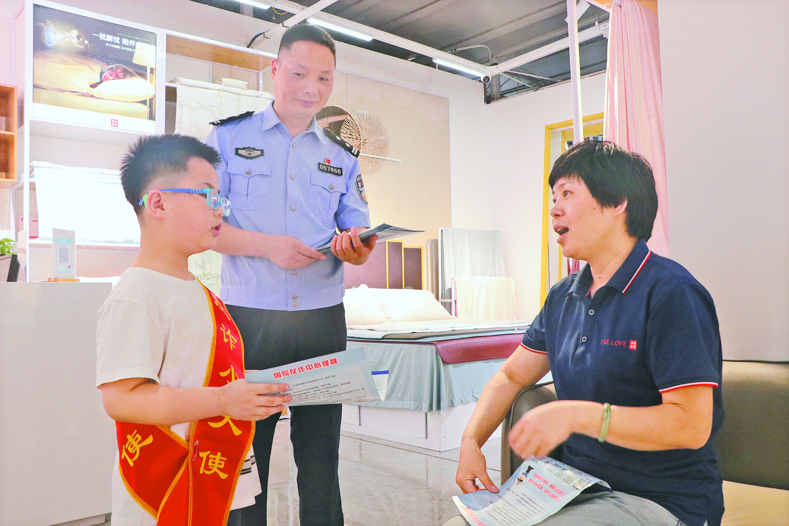 8月9日下午,在“商城公安貨郎擔(dān)”暑期安防知識宣傳活動現(xiàn)場,10位小朋友化身“反詐代言人”,拿著小喇叭,在民警帶領(lǐng)下,從篁園市場中庭出發(fā),整齊排列著走進沿街商鋪,用稚嫩的童聲向商戶們宣講反詐知識,吸引了大批商戶、游客的目光。 本次活動由市公安局商城派出所與商城集團共同舉辦,針對暑期市場內(nèi)人流量大、兒童多的特點,活動前期,商城派出所以市場經(jīng)營戶子女為主體,在國際商貿(mào)城、篁園市場等地招募了300名小朋友作為“反詐代言人”加入“商城公安貨郎擔(dān)”的隊伍中,用最“萌”的聲音,講最“硬核”反詐標(biāo)語。據(jù)介紹,“萌娃”們通過參與反詐宣傳等系列活動,不僅提高了自身的反詐、防詐知識和意識,同時通過社會實踐活動,將防范知識傳遞給身邊的“大朋友”。 市公安局商城派出所篁園中隊中隊長駱劍俊介紹,夏季治安打擊整治行動以來,商城派出所以“商城公安貨郎擔(dān)”為抓手,通過群眾“看得見、容易懂、記得住”的方式開展各類安全宣傳活動15場,發(fā)動群防群治力量500人,發(fā)放傳單近8000份,輻射人群7500余人。 |