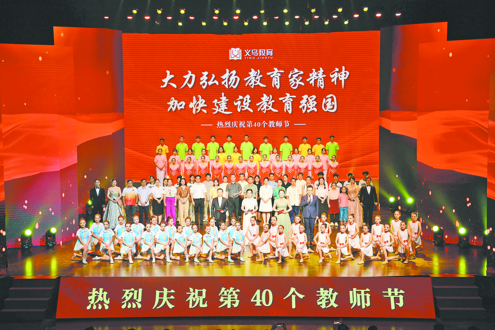 金秋禮贊筑夢(mèng)人,沃土桃李競(jìng)芬芳。9月9日,義烏舉行“大力弘揚(yáng)教育家精神,加快建設(shè)教育強(qiáng)國”慶祝第40個(gè)教師節(jié)大會(huì),表彰為義烏教育事業(yè)發(fā)展作出積極貢獻(xiàn)的先進(jìn)個(gè)人,全面展示義烏教育事業(yè)豐碩成果,生動(dòng)展現(xiàn)新時(shí)代人民教師良好精神風(fēng)貌,營造尊師重教的濃厚氛圍。 市委書記王健出席大會(huì)并致辭。市領(lǐng)導(dǎo)葉幫銳、丁政、陳小忠、傅曉輝、朱有清、何軍杰、龔淑娟,義烏工商職業(yè)技術(shù)學(xué)院黨委書記李昌祖、中國計(jì)量大學(xué)現(xiàn)代科技學(xué)院黨委副書記沈忠偉、浙江大學(xué)“一帶一路”國際醫(yī)學(xué)院副院長(zhǎng)丁瑤參加大會(huì)。 大會(huì)在舞蹈《迎風(fēng)飛揚(yáng)》中拉開帷幕,時(shí)代報(bào)告劇《不負(fù)熱愛》、舞蹈《送你一朵小紅花》、主題報(bào)告劇《市場(chǎng)夢(mèng)·職教夢(mèng)》、表演唱《義烏,傳奇的腳步》、情景劇《最美的答卷》、歌舞《復(fù)興的力量》以及優(yōu)秀老教師宣講和新教師宣誓將氣氛推向高潮。與會(huì)領(lǐng)導(dǎo)為全國教育系統(tǒng)先進(jìn)集體頒獎(jiǎng),為浙江省高層次人才、支持教育事業(yè)先進(jìn)個(gè)人獎(jiǎng)獲得者、浙江省正高級(jí)教師、金華市教學(xué)名師、任教四十年優(yōu)秀教師代表和擔(dān)任班主任工作三十年教師代表頒獎(jiǎng)。 王健代表市四套班子向全市廣大教師和教育工作者致以節(jié)日的問候。他說,教育是國之大計(jì),黨之大計(jì)。過去一年,全市教育系統(tǒng)堅(jiān)持為黨育人、為國育才的初心使命,教育發(fā)展實(shí)現(xiàn)新跨越、教學(xué)質(zhì)量獲得新提升、師資隊(duì)伍呈現(xiàn)新面貌、教育治理打開新局面,全市教育事業(yè)呈現(xiàn)蓬勃發(fā)展的良好態(tài)勢(shì)。去年以來,我市共建成中小學(xué)、幼兒園41所,新增學(xué)位2.5萬個(gè),落實(shí)隨遷子女新生入學(xué)超1.7萬人。 王健表示,黨的二十屆三中全會(huì)《決定》提出“教育、科技、人才是中國式現(xiàn)代化的基礎(chǔ)性、戰(zhàn)略性支撐”,并對(duì)深化教育綜合改革作出戰(zhàn)略部署。剛剛召開的市委十五屆六次全會(huì)提出要高質(zhì)效深化教育科技人才一體改革,謀劃了關(guān)于“完善高質(zhì)量教育體系”的改革舉措。面對(duì)“打造典范、再造輝煌”新征程新使命,要深入學(xué)習(xí)貫徹習(xí)近平總書記關(guān)于教育的重要論述,大力弘揚(yáng)教育家精神,進(jìn)一步營造尊師重教的濃厚氛圍,按照“典范”的要求,著力完善立德樹人機(jī)制、深化教育綜合改革、推進(jìn)教育優(yōu)質(zhì)普惠、加強(qiáng)教師隊(duì)伍建設(shè),努力辦好更加公平、更高質(zhì)量、更具活力、更有特色的新時(shí)代義烏教育。 強(qiáng)國必先強(qiáng)教,強(qiáng)教必先強(qiáng)師。王健希望全市廣大教師牢記習(xí)近平總書記囑托,弘揚(yáng)好教育家精神,以理想信念為燈、照亮教育之路,以道德情操為尺、規(guī)范品行之矩,以扎實(shí)學(xué)識(shí)為基、培育未來之才,以仁愛之心為橋、連接師生之情,努力成為黨和人民滿意、學(xué)生真心喜愛的優(yōu)秀老師,為“打造典范、再造輝煌”貢獻(xiàn)教育力量。 |