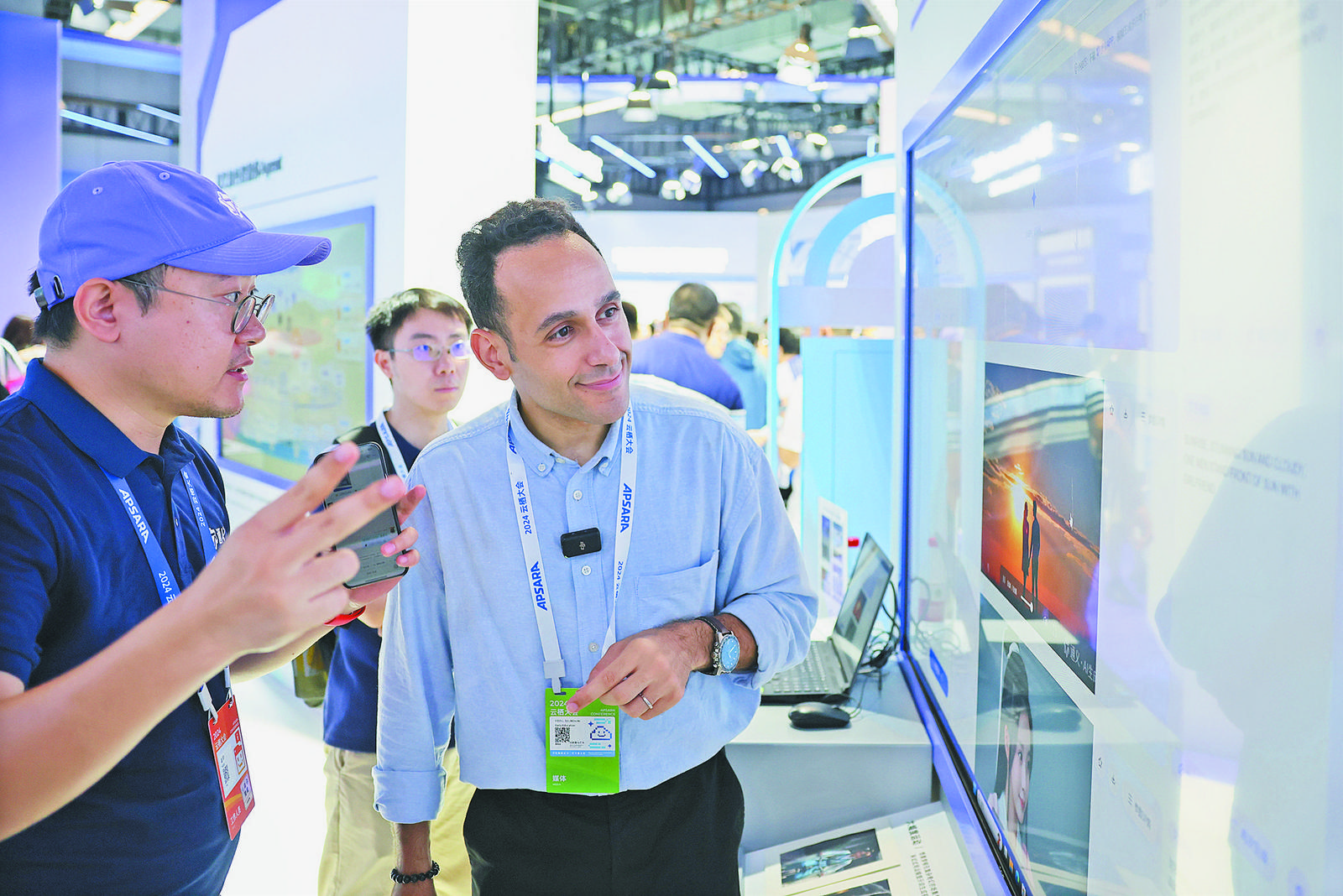 9月19日,媒體記者在“人工智能+”展館了解AIGC視頻創(chuàng)作應用。