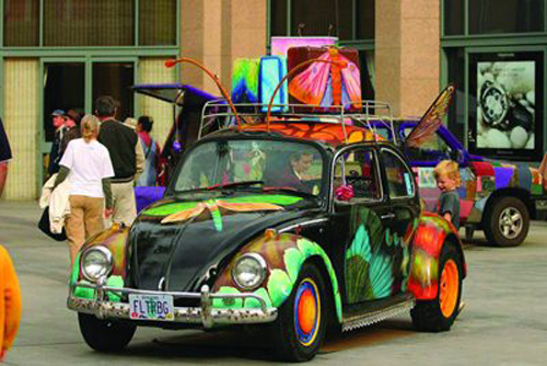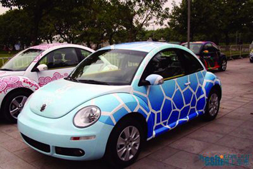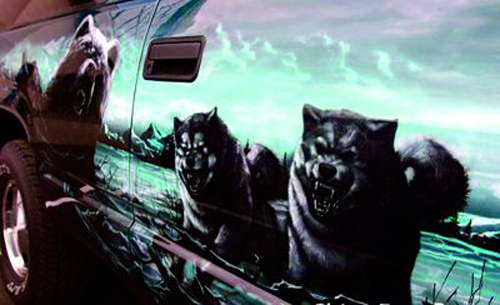 最開始的噴槍畫家大多數(shù)都在自己的畫房中作畫,而且噴涂的規(guī)模也不是很大。所以后期的汽車彩繪畫家有很多經(jīng)驗都是自己一步一步在實踐中摸索出來的。早期的汽車彩繪畫家先是在一些廢舊的汽車上作畫,因為缺乏經(jīng)驗,所以主要以一些簡單的文字涂鴉和卡通圖案為主。而且那時候的汽車彩繪只能算是—種即興發(fā)揮的涂鴉,算不上真正意義上的現(xiàn)代車身彩繪。 奧運類——歡慶顯于車