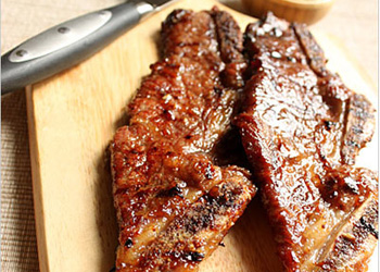 原料:新鮮牛仔骨(short rib,橫切的那種)、料酒、韓式燒烤醬。