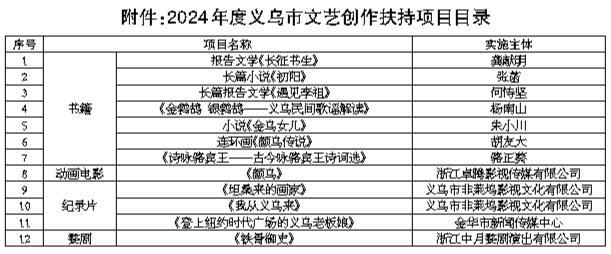 根據(jù)《義烏市文化精品和文化人才扶持獎(jiǎng)勵(lì)辦法》(義宣〔2023〕8號(hào))的有關(guān)規(guī)定,經(jīng)自主申報(bào)、部門審核、市文化精品工程領(lǐng)導(dǎo)小組審定,共評(píng)選出擬扶持的文藝創(chuàng)作項(xiàng)目12件。為確保扶持工作公平公正,現(xiàn)將擬扶持項(xiàng)目予以公示。 公示時(shí)間從2024年11月6日起至2024年11月8日止,如對(duì)被公示項(xiàng)目有疑議,可通過來信、來電、來訪等方式,向中共義烏市委宣傳部反映。反映問題要求實(shí)名,實(shí)事求是、客觀公正。我們將嚴(yán)格遵守工作紀(jì)律,履行保密義務(wù)。 通訊地址:浙江省義烏市縣前街21號(hào)宣傳部文化科 郵 編:322099 聯(lián)系電話:0579-85522112 附件:2024年度義烏市文藝創(chuàng)作扶持項(xiàng)目目錄 中共義烏市委宣傳部 二⚪二四年十一月四日 |
