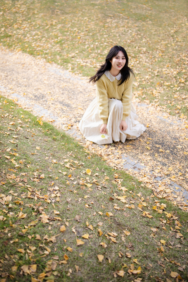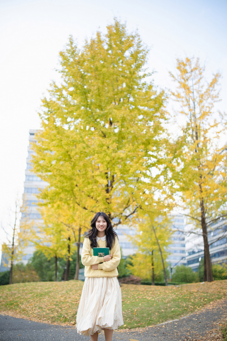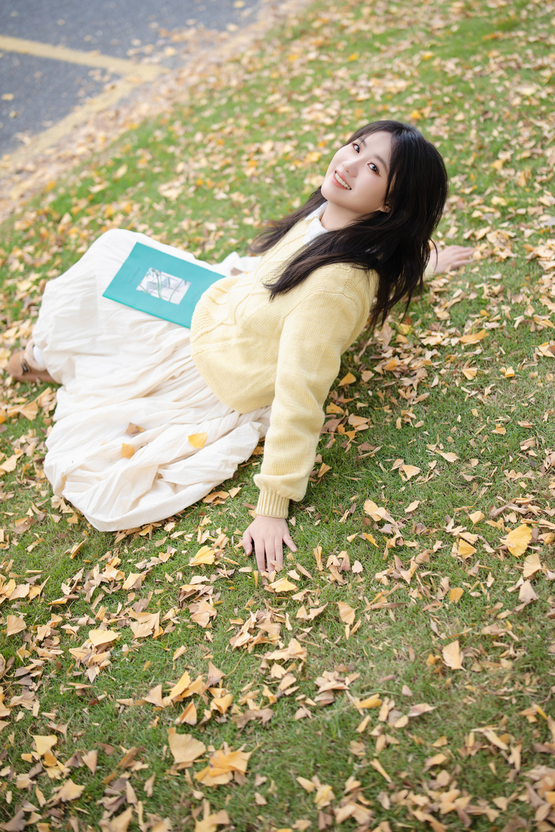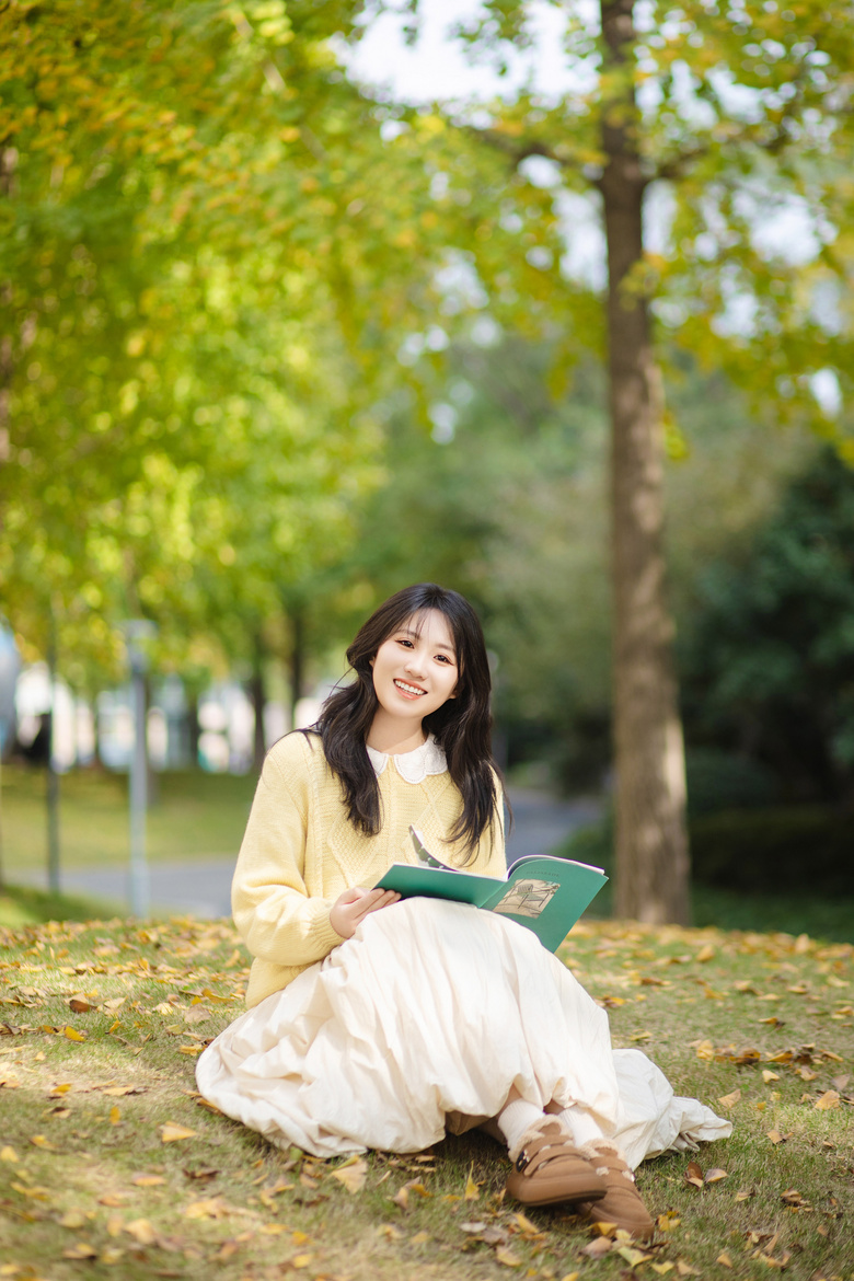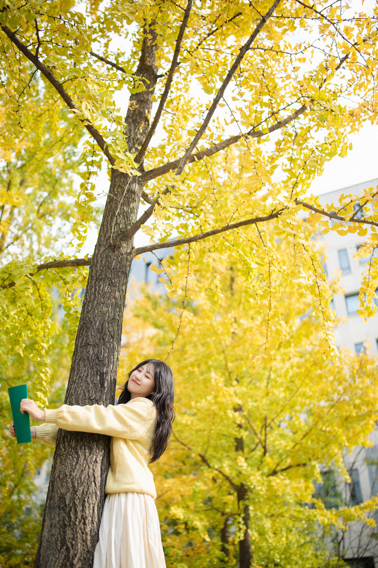 鄰家小姑娘出來(lái)在銀杏樹(shù)下玩耍