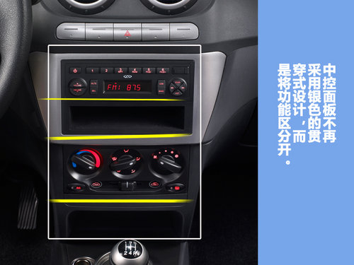 內(nèi)飾部分是新款A(yù)1改變較大的地方,當(dāng)進(jìn)入車內(nèi),其中最顯著的一處變化是儀表盤由原來的炮筒式造型改為新款的數(shù)字式智能儀表盤,讀取方式多樣性的同時(shí),科技感和時(shí)尚感得到很好的融合,也許這是奇瑞小車儀表盤發(fā)展的趨勢,同樣的設(shè)計(jì)在新上市的旗云1上得到很好的應(yīng)用。