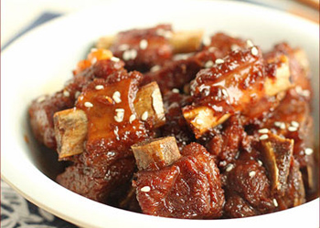 原料:肋排2根、油1大匙、鹽1小匙、生抽1大匙、老抽少許、醋2大匙、糖1大匙、水約400ml、雞精1/2小匙、熟芝麻適量。 做法: 1、肋排洗凈斬段、放清水中浸泡約半小時,去除血水后瀝干; 2、鍋中倒油,約7成熱時倒入排骨不停翻炒,直至排骨顏色金黃、表皮變脆; 3、調(diào)入鹽、生抽、老抽、醋不停翻炒,使排骨均勻地裹上醬汁; 4、倒入水,以略沒過排骨為宜,調(diào)入糖,大火煮沸后轉(zhuǎn)小火燉約半小時; 5、待排骨軟爛、還剩下少許湯汁時,開大火收汁,直到湯汁粘稠,調(diào)入雞精,關(guān)火,撒上白芝麻。 |