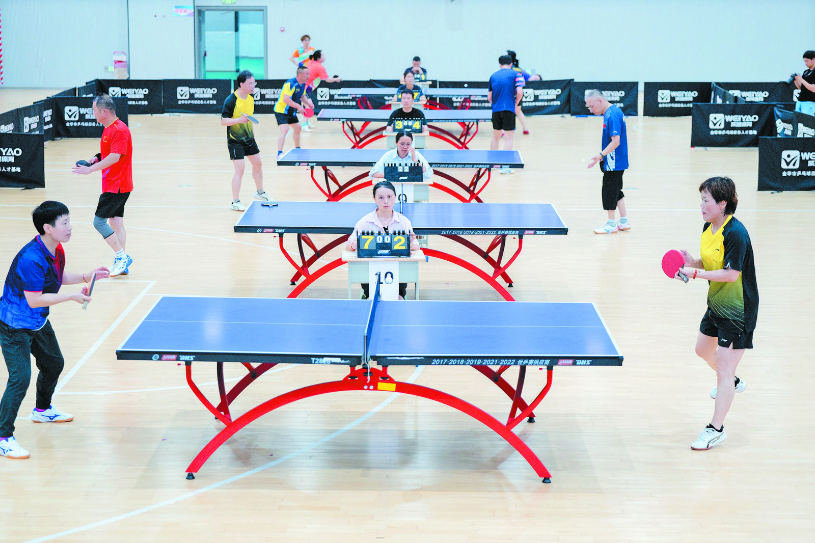 日前,義烏市第四屆職工運動會乒乓球賽在江東中學(xué)舉行,來自全市27支代表隊的215名職工齊聚賽場,以球為媒揮拍爭鋒。