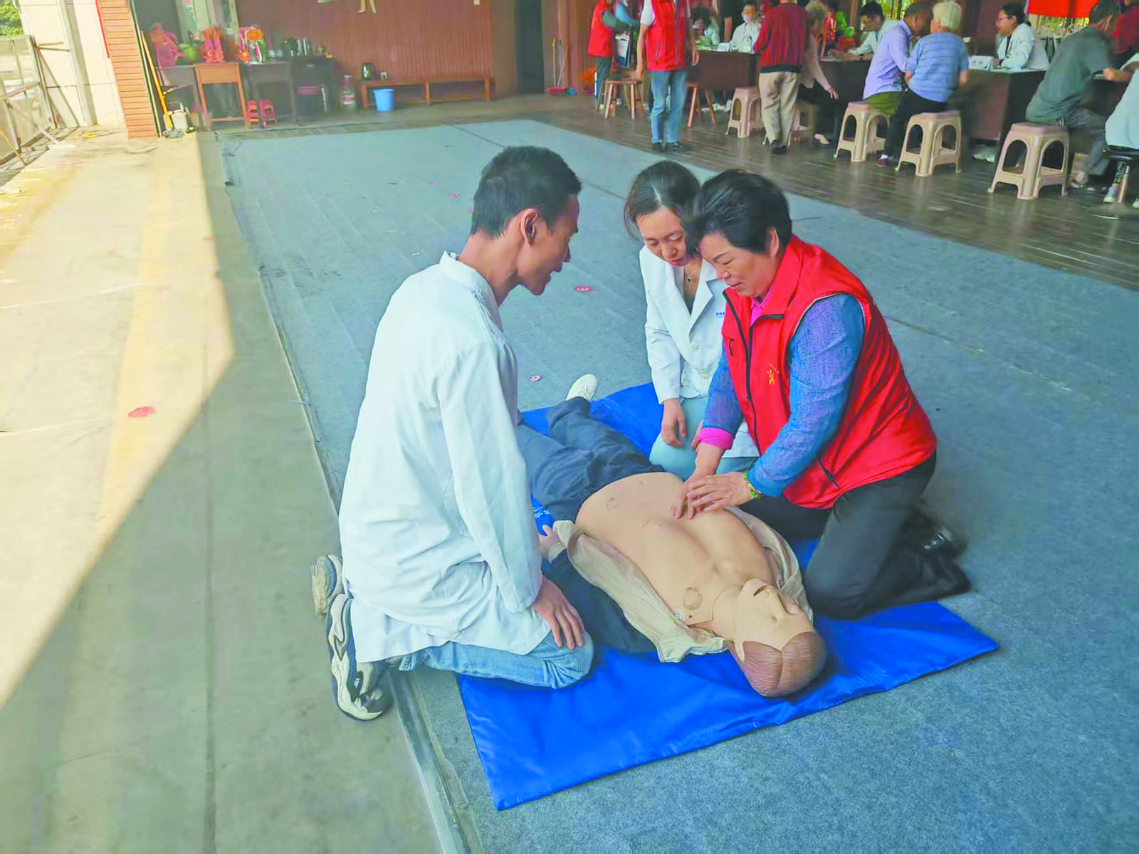 培訓期間,醫(yī)護人員用通俗易懂的語言講解心肺復蘇、AED使用等急救知識,并通過實操和模擬演練,指導志愿者、居民掌握急救技能,提升應急救助能力。