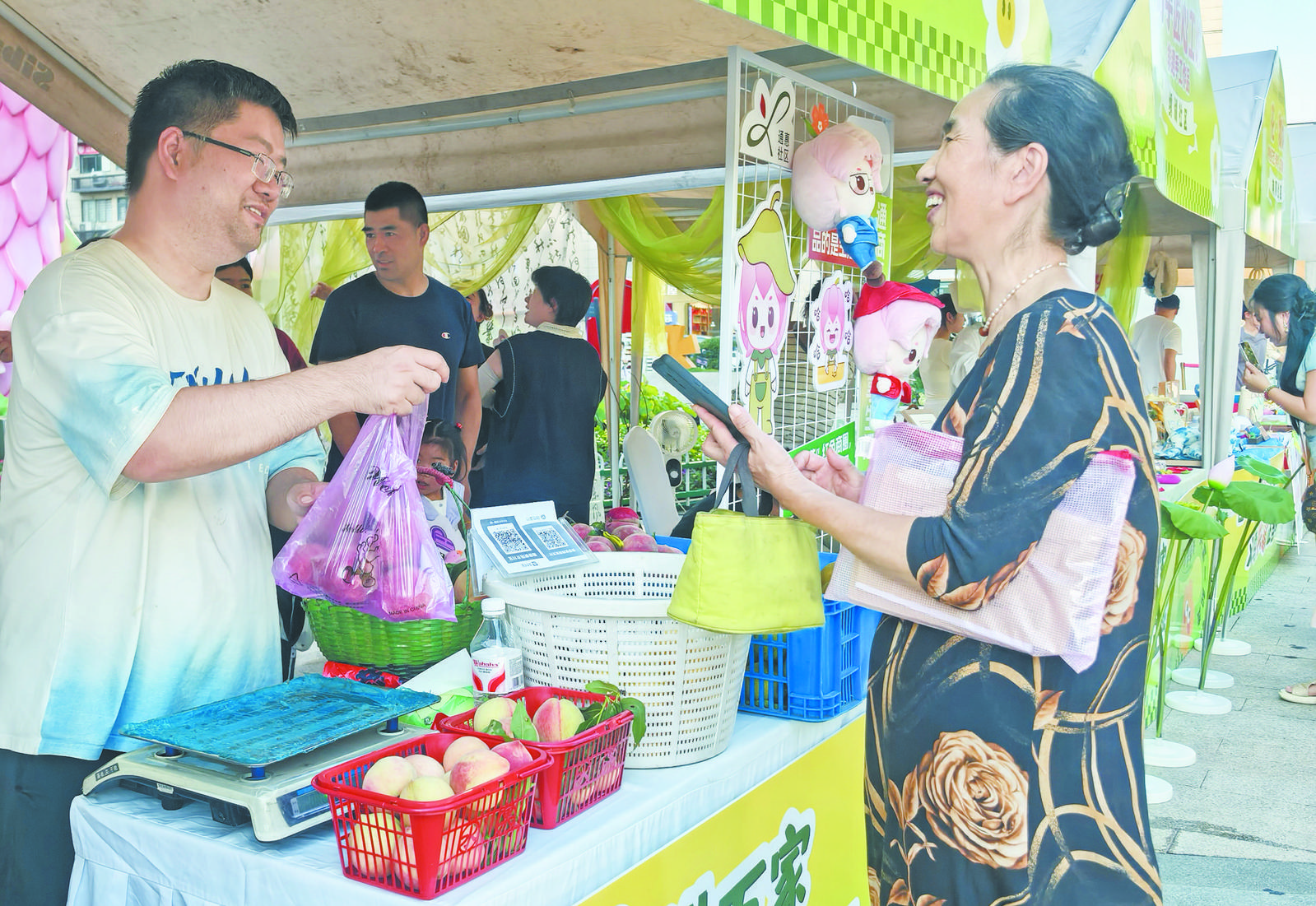 7月4日至5日,“百坊連百集 共建促共富”黨建聯建活動舉行,來自上溪鎮(zhèn)的7家共富工坊與稠城街道7個社區(qū)達成“一對一”共建對子,20多個共富工坊和鄰里市集在義烏之心南門廣場一溜兒排開,吸引了眾多市民踴躍參與。 此次活動旨在通過城鄉(xiāng)黨組織結對共建,深化“百坊連百集”品牌建設,推動社區(qū)資源下沉與鄉(xiāng)村產業(yè)升級雙向賦能,打造“城鄉(xiāng)手牽手·共富一起走”的示范樣板。 活動首日,步入鄉(xiāng)土共富市集,黃桃、生姜等農產品整齊陳列,散發(fā)著泥土的芬芳與自然的鮮甜。在上溪農特產品攤位前,62歲的王芝香與老伴現場制作麻糍,一個翻料,一個掄錘,配合默契,引來眾多市民圍觀等候!吧徟钍俏覀冊缟5點現摘的,240多個蓮蓬分把售賣,一會兒工夫就沒剩多少了。還有現摘的荷花和荷葉茶、蓮子心等手工產品,都很受大家歡迎!碧飯@潛溪共富工坊負責人朱婷婷高興地說,“這次活動特別好,既是宣傳平臺,也是展銷平臺,讓我們把田間地頭的上溪農產品,直接送到了稠城居民的餐桌上。” 另一側,鄰里市集的攤位上,稠城街道各社區(qū)帶來的特色美食與文創(chuàng)產品同樣吸睛!扒煽肆ξ丁⒉葺逗团S凸兜奶鹌范加,你喜歡哪一種?”在土耳其甜品攤位上,12歲的阿米拉利趁著暑假前來“練攤”,他熟練地為顧客裝杯,“我今天的目標是賣掉1000杯冰激凌”。 “我買了很多平時買不到的土貨,購物袋都裝滿了!”一位市民開心地分享她的收獲。還有不少市民在滿載而歸的同時,還主動通過朋友圈、短視頻為“上溪好物”代言,助力農特產品“破圈”遠銷。 共富市集的公益便民區(qū)亦是人頭攢動。公益理發(fā)攤位前,手持推剪的志愿者正有條不紊地為銀發(fā)老人服務,邊剪邊聊,氣氛融洽;一旁的征兵宣傳點,工作人員則熱情地向過往人群發(fā)放宣傳冊、講解政策,吸引了不少青年駐足咨詢。 活動現場特別設置了直播專區(qū),網絡主播們通過鏡頭向全國網友熱情推介上溪好物和稠城美食,實現線上線下聯動,有力助推兩地群眾增收、集體增富。 “本次活動,我們還創(chuàng)新推出了兩大共富長效模式。一是投放了智能農特產品售貨機,可以高效、精準地將上溪鎮(zhèn)的優(yōu)質農特產品直接引入城市消費前沿。二是開展網格化+社區(qū)團購模式,以稠城街道社區(qū)為單位,直接對接上溪供應點,以訂單式集中采購生鮮產品,讓城區(qū)居民享用優(yōu)質優(yōu)價的農產品!鄙舷(zhèn)相關負責人介紹。 今年以來,上溪鎮(zhèn)堅持抓黨建促“強城”“興村”“融合”工作體系,通過“黨建聯建+強基鑄魂”“社區(qū)結對+社工幫帶”“產業(yè)協同+民生共富”“服務鏈接+資源融合”等方式,與稠城街道等單位建立城鄉(xiāng)共富片區(qū)黨建聯建機制,加快推動城鄉(xiāng)片區(qū)組團發(fā)展。同時,上溪鎮(zhèn)深化“百坊連百集”行動,創(chuàng)新“共富工坊+鄰里市集”模式,立足潛溪蓮韻、紅糖王村、1909蝶戀花等特色工坊,結對稠城街道通惠社區(qū)“荷小芯”“百億”商圈市集、車站社區(qū)“美好78”市集、下車門社區(qū)“稠州一家人”鄰里市集等資源,做深做實“上溪八味”土特產共富文章,打通供銷兩端互助路徑,放大助力共富效能。截至目前,“百坊連百集”活動直接銷售額達30余萬元,帶動村集體增收200余萬元。 |
