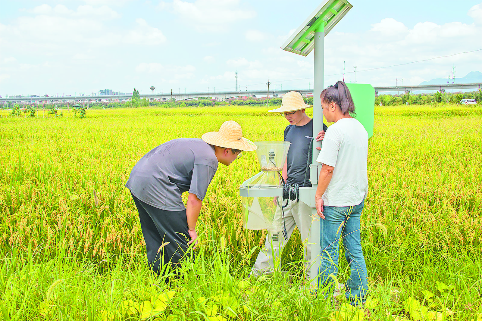 “當(dāng)前一代二化螟已進(jìn)入化蛾高峰,二代二化螟幼蟲防治適期將到來,農(nóng)戶可根據(jù)新發(fā)布的病蟲情報做好二代二化螟的防治!比涨埃修r(nóng)業(yè)農(nóng)村局植保測報員陶家垚通過智慧物聯(lián)平臺,匯總近幾日全市10個害蟲測報點(diǎn)數(shù)據(jù)后,及時發(fā)布了最新一期病蟲情報。 這一份份精準(zhǔn)的防治指南,正是我市“人工+智能”蟲情監(jiān)測體系的生動實踐,全面推動農(nóng)作物病蟲草害防治工作邁向精準(zhǔn)化、綠色化、高效化。 人工+智能 讓蟲情測報更精準(zhǔn) 7月,城西街道上楊村的水稻田碧波蕩漾。新投用的害蟲智能測報站佇立田埂上,如同“電子哨兵”,可自動獲得害蟲的種類、數(shù)量等參數(shù),數(shù)據(jù)實時上傳至云端平臺,最終顯現(xiàn)在工作人員電腦屏幕上。 “有了這個設(shè)備,基本實現(xiàn)‘人在屋中坐,盡知田間事’!碧占覉惤榻B,6月至7月是我市水稻生產(chǎn)和產(chǎn)量形成的重要時期,也是防治二化螟等重大病蟲發(fā)生危害的關(guān)鍵時期。以往測報靠人工,就需要頻繁進(jìn)出田間,每天記錄觀察成蟲數(shù)量,判斷二化螟發(fā)蛾高峰,再根據(jù)溫度條件預(yù)測下一代二化螟防治適期。如今,智能設(shè)備自動監(jiān)測蟲量,打開電腦就能直觀地看到害蟲數(shù)量變化,并結(jié)合農(nóng)技人員田間調(diào)查數(shù)據(jù),能更準(zhǔn)確地發(fā)布病蟲情報,指導(dǎo)農(nóng)戶精準(zhǔn)防治,提升防治效果。 據(jù)悉,二化螟是國家一類農(nóng)作物病蟲害,會鉆入水稻莖稈內(nèi)部蛀食,容易導(dǎo)致水稻大面積枯鞘、枯心、白穗。必須抓住蟲卵孵化的高峰期,趁剛孵的幼蟲在葉片、葉鞘表面活動,并且對農(nóng)藥敏感時期進(jìn)行防治。 今年,我市新增4個害蟲智能測報站,全市智能監(jiān)測點(diǎn)總數(shù)達(dá)到10個,基本覆蓋全市所有農(nóng)業(yè)鎮(zhèn)街。這些智能設(shè)備能精準(zhǔn)記錄每日蟲量變化,結(jié)合植保人員的田間調(diào)查,再輔以第三方專業(yè)測報公司的數(shù)據(jù)分析,形成一套“智能初篩+人工復(fù)核+專業(yè)研判”的閉環(huán)體系。截至目前,我市今年已發(fā)布小麥、水稻等作物病蟲情報7期。 生物+物理 綠色防控守護(hù)生態(tài)田 7月7日上午,市農(nóng)業(yè)農(nóng)村局農(nóng)技人員陳國安、陶家垚和種糧大戶吳琴仙,一同查看今年新投入使用的智能測報與殺蟲設(shè)備運(yùn)行情況。陶家垚打開設(shè)備,指著里面密密麻麻的二化螟說:“這個設(shè)備使用了高純度的害蟲信息素誘芯,只會誘捕這一種害蟲,不傷害天敵,不僅能計數(shù)還能起除蟲作用,效果比一般誘捕器更好。” 到田間查看后,他對吳琴仙叮囑道:“從智能測報設(shè)備監(jiān)測情況和田間調(diào)查數(shù)據(jù)結(jié)合來看,目前一代二化螟蟲情進(jìn)入末期。需要注意二代二化螟的危害,特別要做好單季稻的防治,需要密切關(guān)注蟲情發(fā)展,發(fā)現(xiàn)苗頭及時防治! 市農(nóng)業(yè)農(nóng)村局相關(guān)負(fù)責(zé)人介紹,近年來,我市堅持“生態(tài)優(yōu)先、綠色發(fā)展”理念,持續(xù)推進(jìn)綠色防控技術(shù)落地。今年以來,全市新增風(fēng)吸式殺蟲燈48盞,投放水稻二化螟誘捕器、迷婚劑1500余套,利用害蟲的趨光性、趨化性進(jìn)行物理誘殺。目前,我市已建成省級農(nóng)作物病蟲害綠色防控示范基地7個,輻射帶動周邊農(nóng)戶應(yīng)用綠色防控技術(shù)超萬畝。數(shù)據(jù)顯示,全市農(nóng)作物綠色防控覆蓋率已提升至58.9%,在有效控制病蟲草害的同時,讓農(nóng)田生態(tài)環(huán)境更健康。 線上+線下 技術(shù)服務(wù)送到田埂上 近期,市農(nóng)業(yè)農(nóng)村局抽調(diào)19名農(nóng)技骨干走訪規(guī)模種糧經(jīng)營戶,深入田間地頭為種糧大戶提供政策咨詢及技術(shù)指導(dǎo)。 為進(jìn)一步普及防控技術(shù),我市構(gòu)建“線上+線下”雙軌服務(wù)體系。線上,通過廣播電視臺、微信公眾號、短視頻平臺等,宣傳智能測報、綠色防控知識。線下,舉辦糧油病蟲防控技術(shù)培訓(xùn),重點(diǎn)推廣滅茬深耕、灌水滅蛹、平整土地、土壤封閉等病蟲害和惡性雜草物理防治技術(shù)。據(jù)悉,今年全市已完成小麥“一噴三防”2萬畝、水稻統(tǒng)防統(tǒng)治2.8萬畝,有效遏制了病蟲草害擴(kuò)散蔓延。 市農(nóng)業(yè)農(nóng)村局相關(guān)負(fù)責(zé)人表示,將持續(xù)深化病蟲害智能監(jiān)測網(wǎng)絡(luò),不斷擴(kuò)大綠色防控基地范圍,讓科學(xué)防控技術(shù)惠及更多農(nóng)戶,通過“綠色防控+數(shù)字賦能”雙輪驅(qū)動,打贏“蟲口奪糧”攻堅戰(zhàn),讓科技糧倉裝滿豐收希望。 |