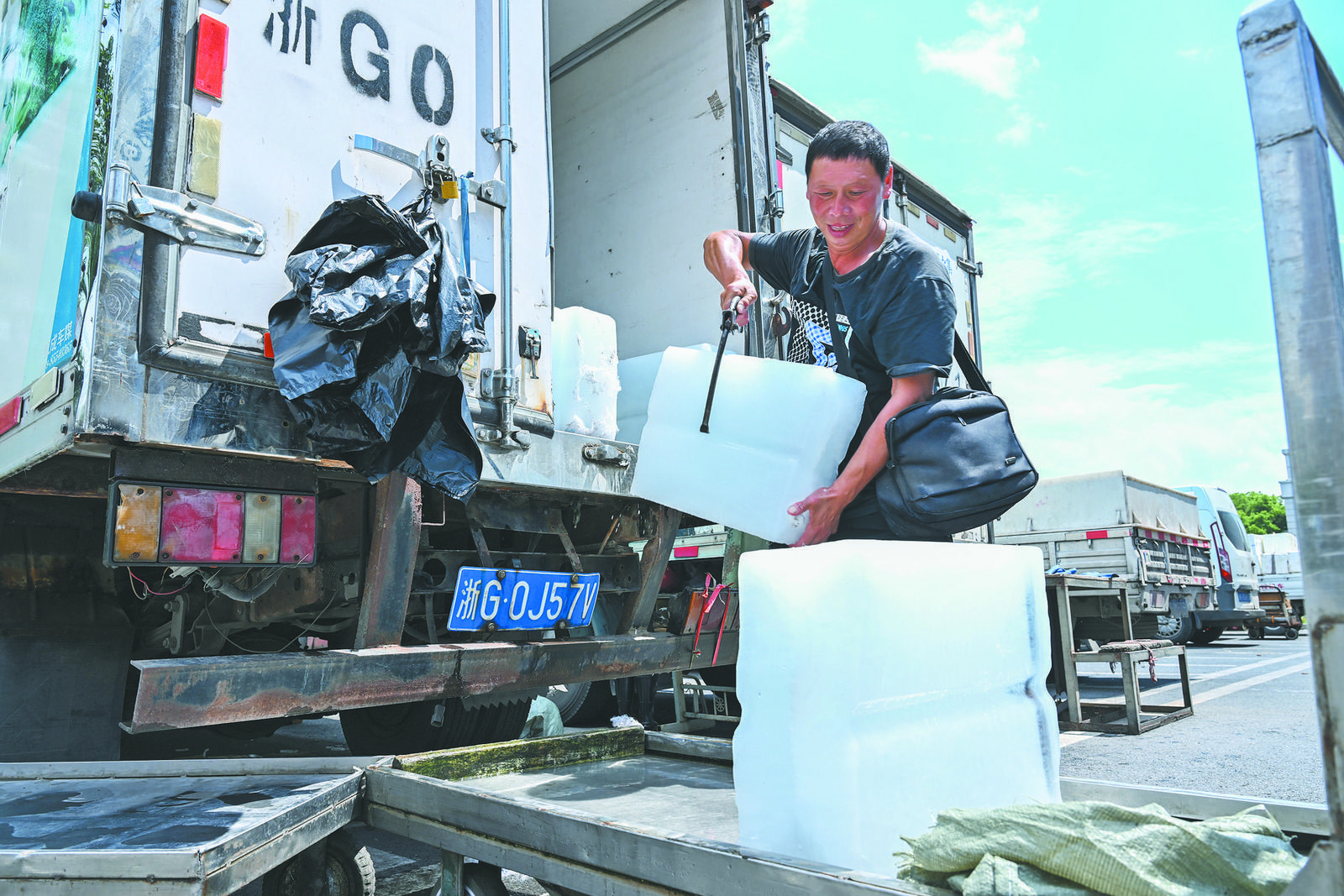 連日來(lái),烈日當(dāng)空,暑氣逼人,當(dāng)空調(diào)成為大多數(shù)人的避暑首選時(shí),“清涼擔(dān)當(dāng)”——冰塊正助力整座城市的夏日運(yùn)轉(zhuǎn)。 8月4日下午,義烏市冰亞冷凍食品有限公司(以下簡(jiǎn)稱“冰亞冷凍”)的生產(chǎn)車(chē)間內(nèi),涼意陣陣襲來(lái)。制冰機(jī)正將冷凍成形的冰塊脫模,輸送至傳送帶,工人們則在另一端熟練地接應(yīng),將冰塊裝車(chē)運(yùn)走。這批冰塊是當(dāng)天上午開(kāi)始制作的,經(jīng)過(guò)近10小時(shí)的冷凍,被送往義烏及周邊地區(qū)的菜市場(chǎng)、工廠和商超。 “冰亞冷凍”負(fù)責(zé)人王惠琴?gòu)氖轮票袠I(yè)已有20年。她告訴記者,暑期是他們的產(chǎn)銷(xiāo)旺季,訂單量比淡季增長(zhǎng)5倍左右,當(dāng)天生產(chǎn)的冰塊當(dāng)天就能售罄!叭绻麣鉁爻^(guò)35℃,需求量會(huì)更大。我們的4臺(tái)大型制冰機(jī)24小時(shí)錯(cuò)峰運(yùn)轉(zhuǎn),確保供應(yīng)不斷檔!蓖趸萸僬f(shuō)。為了提高生產(chǎn)效率,今年該公司更新了制冰設(shè)備,全自動(dòng)生產(chǎn)線讓產(chǎn)能翻了一倍,人工成本也有所減少,F(xiàn)在一個(gè)班次只需要3名工人,但能完成過(guò)去6個(gè)人的工作量。 記者了解到,“冰亞冰凍”的4臺(tái)大型制冰機(jī)每天能產(chǎn)出3600塊標(biāo)準(zhǔn)塊冰。單個(gè)塊冰重達(dá)105斤,出廠溫度保持在零下2.8℃的低溫狀態(tài),確保在運(yùn)輸和使用過(guò)程中維持最佳降溫效果。 “在室內(nèi),一塊冰可以維持15小時(shí)左右的降溫效果。戶外使用時(shí)間約10小時(shí)!蓖趸萸俳榻B,塊冰在室內(nèi)配合電風(fēng)扇使用時(shí),降溫幅度可達(dá)6℃左右,特別適合高溫環(huán)境下的應(yīng)急降溫。 除塊冰外,“冰亞冷凍”還提供碎冰加工服務(wù)。碎冰生產(chǎn)線每小時(shí)可產(chǎn)出500包至600包,每包38斤,主要用于菜市場(chǎng)海鮮攤位的保鮮。 在詞林菜市場(chǎng)三文魚(yú)攤位,記者注意到,一排排新鮮的三文魚(yú)被放置在用碎冰搭建的“冰臺(tái)”上,攤位負(fù)責(zé)人李宜超向記者展示了他們的保鮮秘訣!叭聂~(yú)最理想的保鮮溫度是1℃至2℃,這樣不僅能保持最佳口感,還能最大程度鎖住鮮味!睘榱吮WC食材品質(zhì),他們每天上午開(kāi)市前和下午客流高峰前各更換一次碎冰!懊繐Q一次冰要用掉4包至5包碎冰,加上給顧客打包時(shí)提供的冰盤(pán),日均消耗碎冰9包! 這種用冰降溫的智慧,不僅存在于菜市場(chǎng),更走進(jìn)了城市商業(yè)空間。轉(zhuǎn)過(guò)幾個(gè)街區(qū),在義烏天地購(gòu)物中心的中庭,一個(gè)由數(shù)十塊晶瑩冰塊拼成的巨型“COOL”字樣吸引著往來(lái)顧客的目光!皭灍岬氖彝,看到這么多冰塊,心理上就先涼快了一半!睅е鴥鹤庸浣值膹埓禾m笑著說(shuō)。在冰塊裝飾旁,有人伸手感受冰塊的涼意,有人忙著拍照打卡,感受這份夏日限定的清涼驚喜。 對(duì)冰塊的旺盛需求,催生了冰塊配送員這一特殊的職業(yè)群體。義烏市中心菜市場(chǎng)二樓,何國(guó)良拉著裝滿冰塊的小車(chē)一趟又一趟地穿梭在攤位之間。作為冰塊配送員,他每天要往返冰庫(kù)和菜市場(chǎng)數(shù)十趟,從凌晨3點(diǎn)工作到傍晚6點(diǎn)。 何國(guó)良告訴記者,菜市場(chǎng)的用冰需求呈現(xiàn)明顯的“雙高峰”特征。凌晨3點(diǎn)至6點(diǎn)是海鮮批發(fā)的高峰期,活鮮運(yùn)輸需要大量冰塊保鮮。下午4點(diǎn)至6點(diǎn)則是蔬菜攤主集中補(bǔ)冰的時(shí)間,用于延長(zhǎng)未售完蔬菜的保鮮期!白蠲Φ臅r(shí)候,我和搭檔一天要送兩車(chē)冰塊,差不多有250塊!焙螄(guó)良說(shuō)。 |